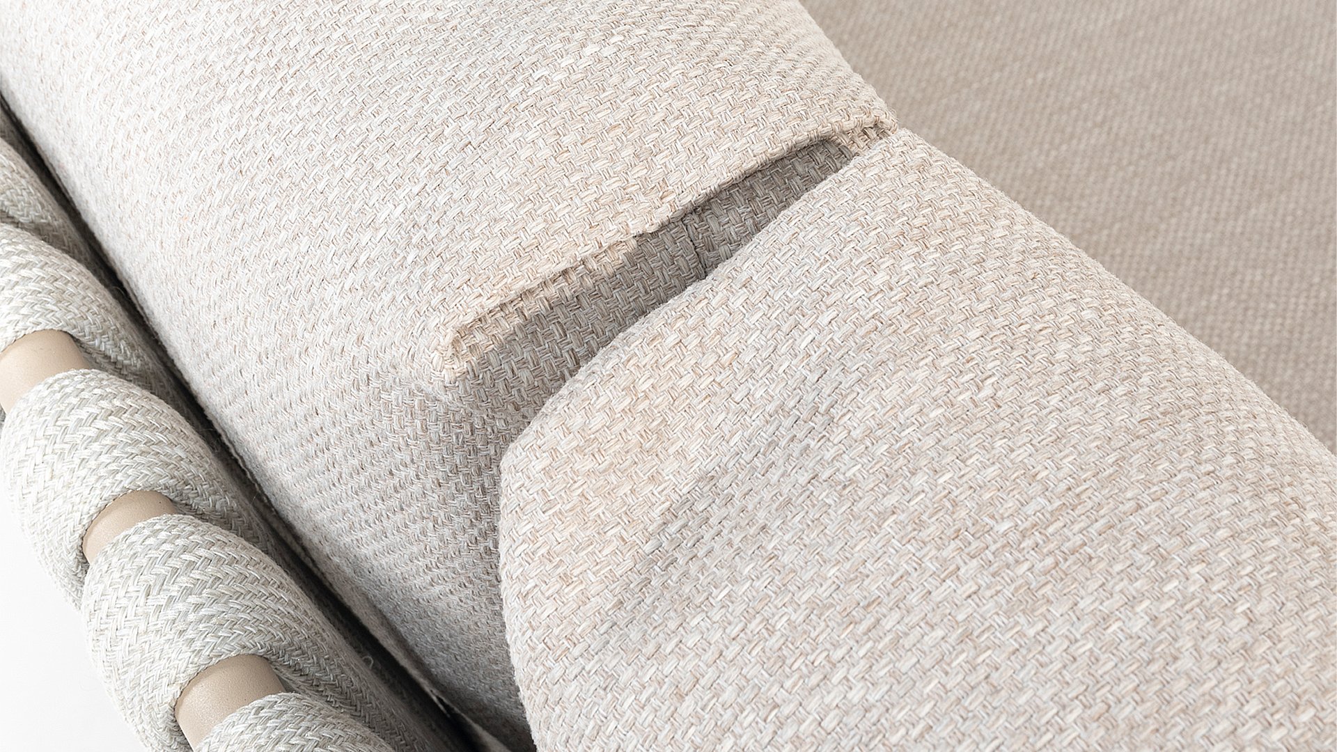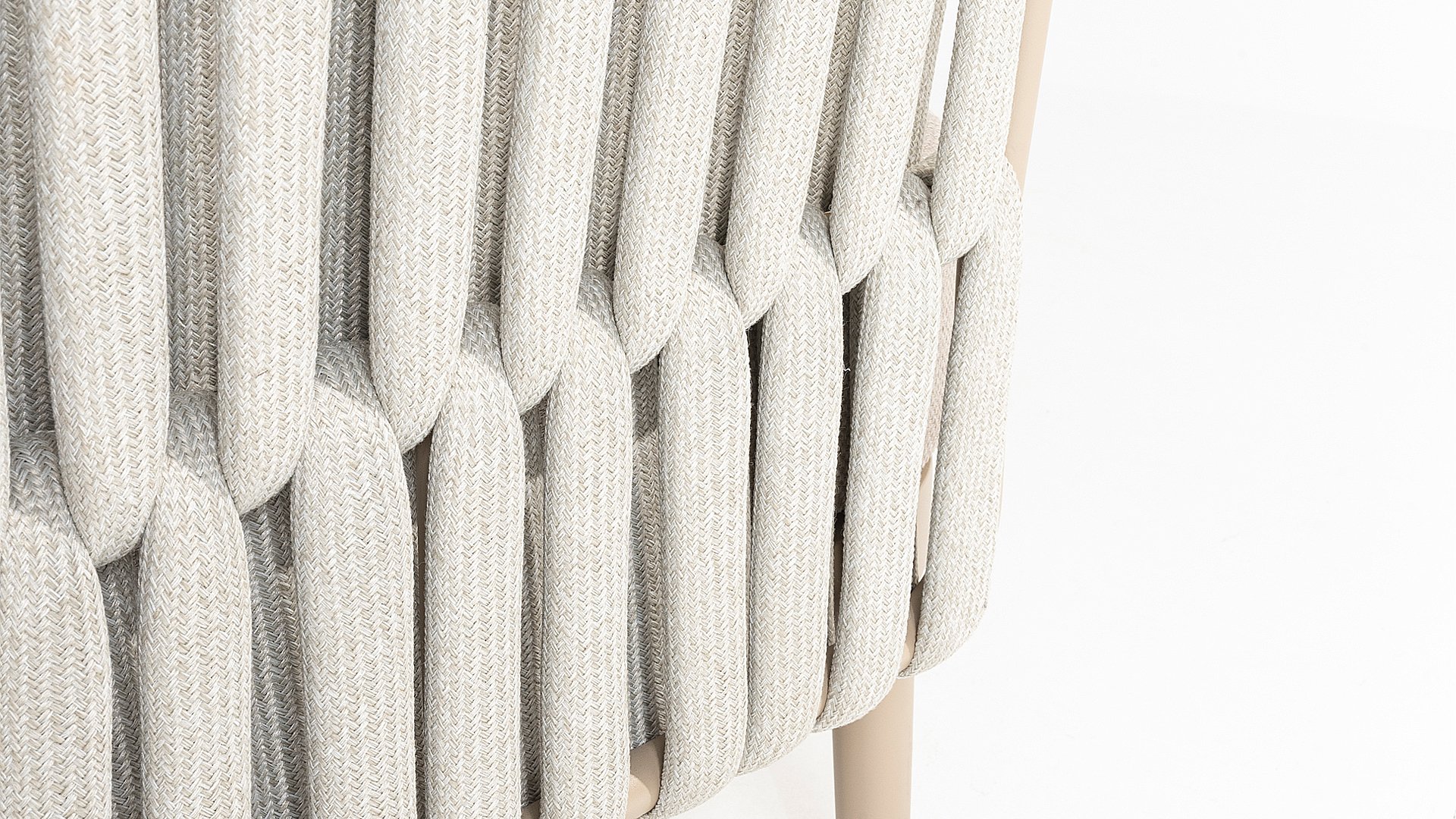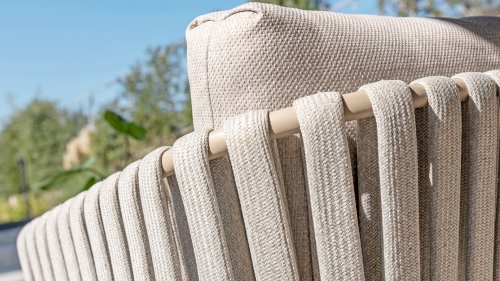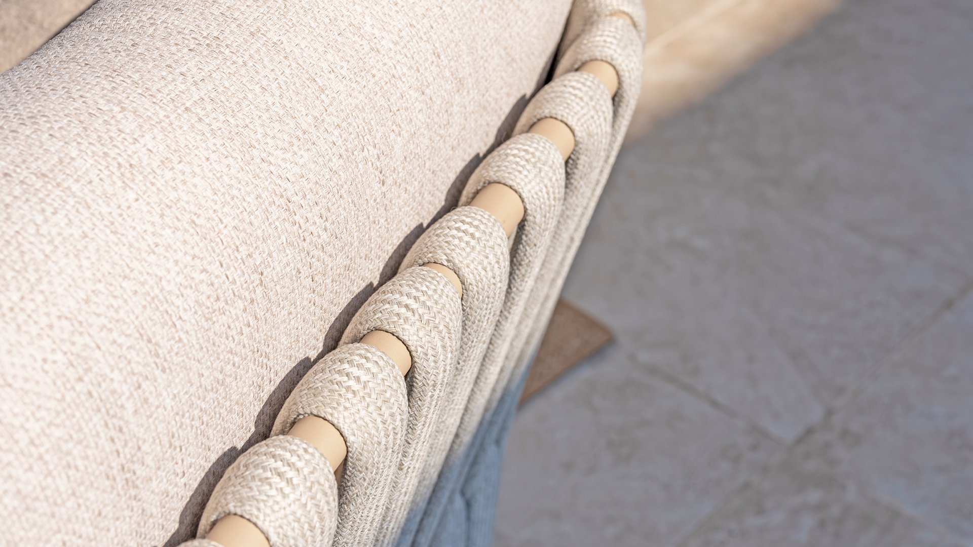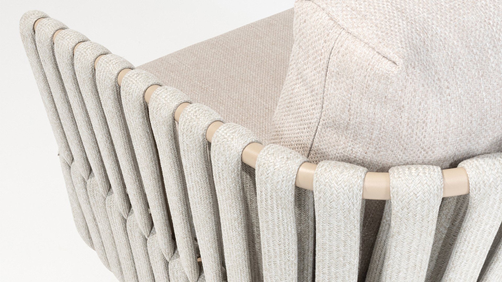 This beautiful material is perfect for outdoor use, because Taste Rope isn't just any shoelace. Taste uses very high-quality rope made from 100% SDP (Solution Dyed Polypropylene). This material is extremely strong and has very little stretch. Polypropylene is oil-based, so dirt and contaminants are virtually insoluble, just like our cushions. Taste offers exclusive designs using hand-woven rope patterns and techniques.