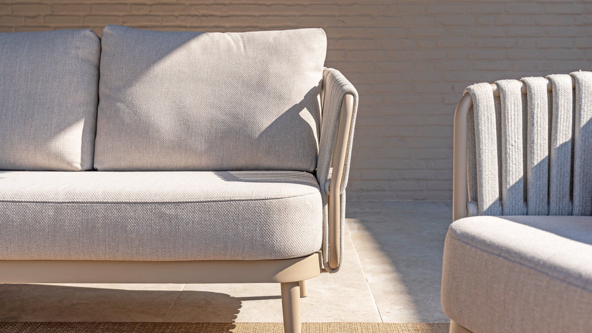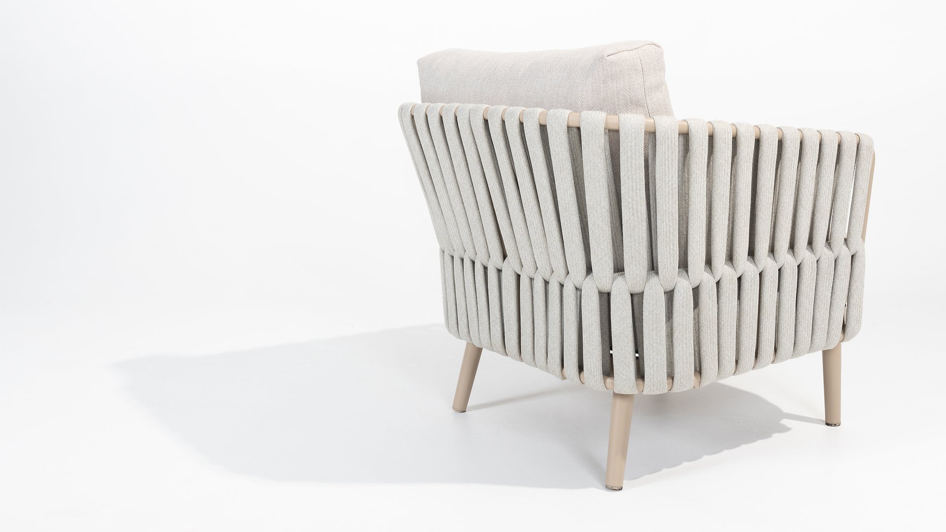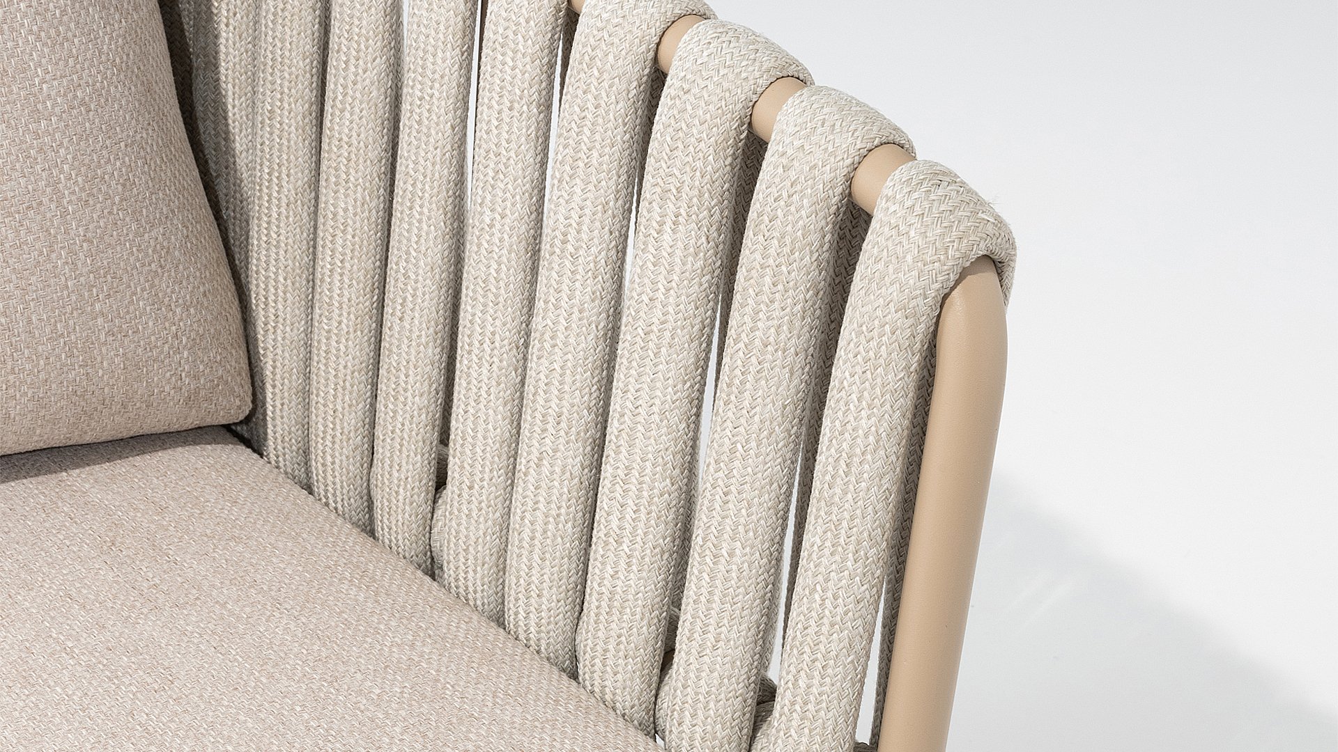 This beautiful material is perfect for outdoor use, because Taste Rope isn't just any shoelace. Taste uses very high-quality rope made from 100% SDP (Solution Dyed Polypropylene). This material is extremely strong and has very little stretch. Polypropylene is oil-based, so dirt and contaminants are virtually insoluble, just like our cushions. Taste offers exclusive designs using hand-woven rope patterns and techniques.