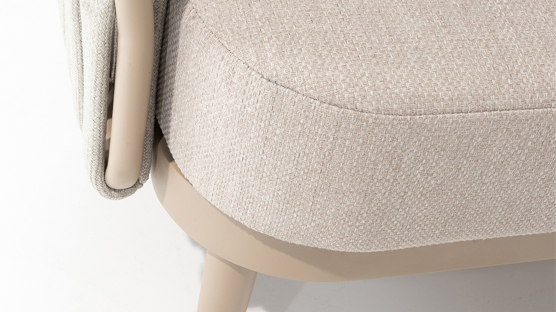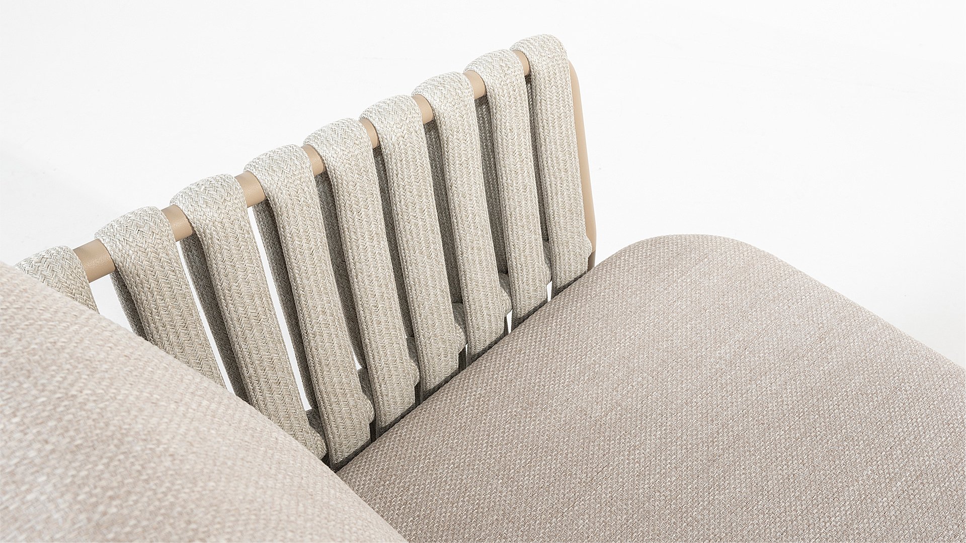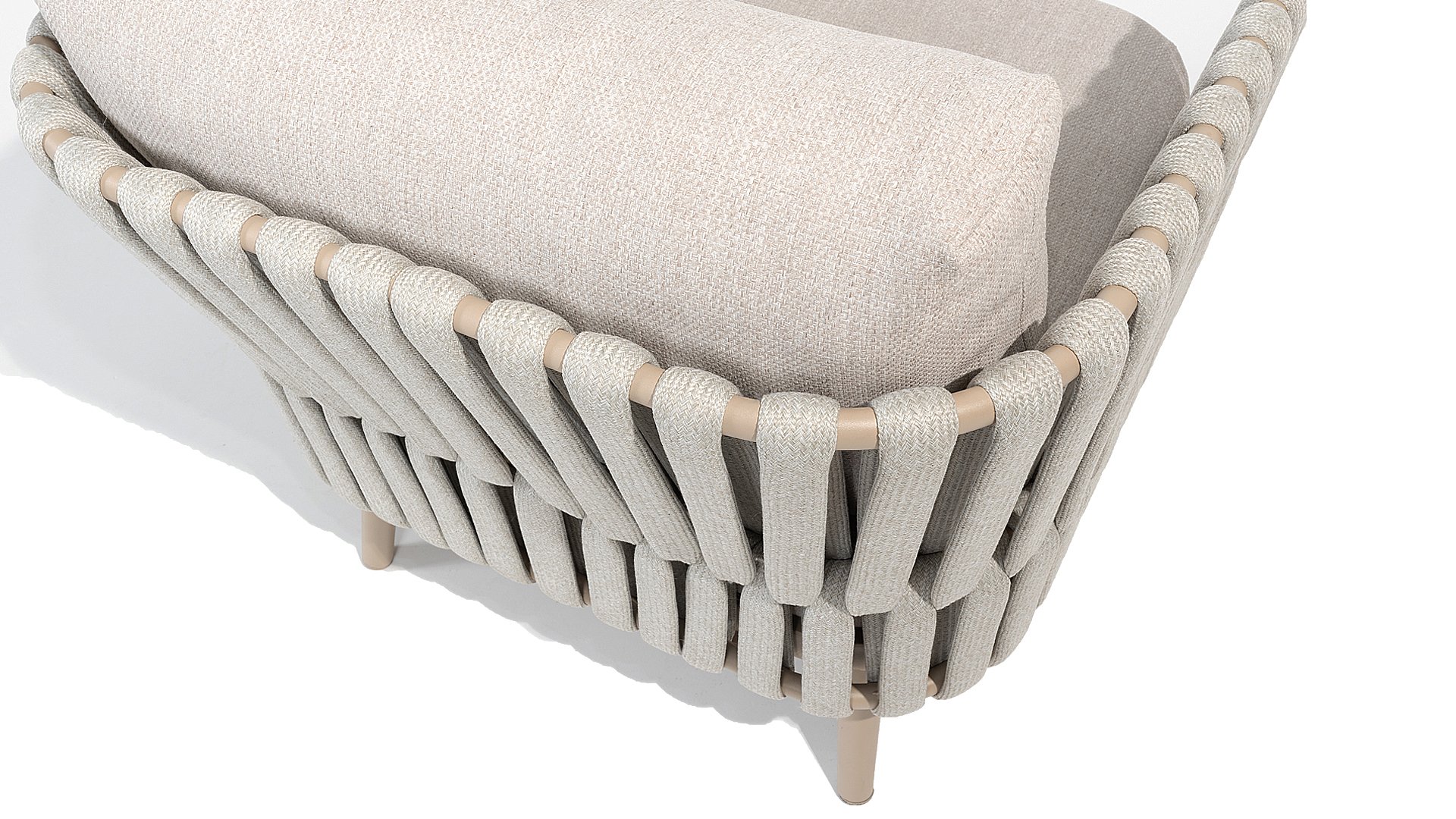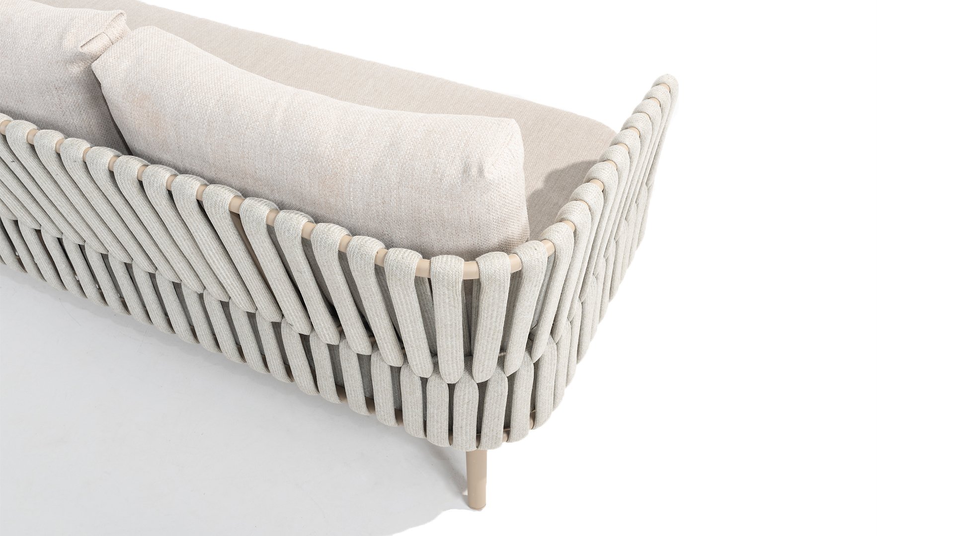 This beautiful material is perfect for outdoor use, because Taste Rope isn't just any shoelace. Taste uses very high-quality rope made from 100% SDP (Solution Dyed Polypropylene). This material is extremely strong and has very little stretch. Polypropylene is oil-based, so dirt and contaminants are virtually insoluble, just like our cushions. Taste offers exclusive designs using hand-woven rope patterns and techniques.