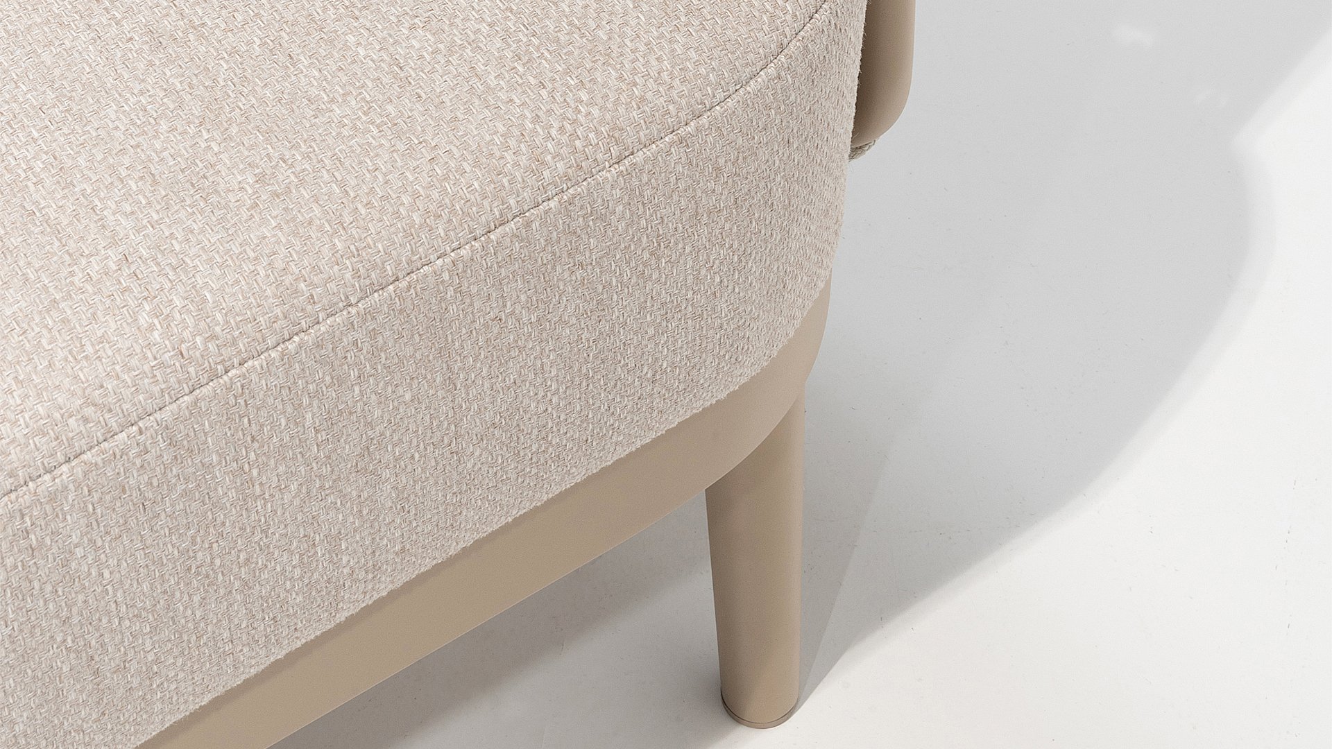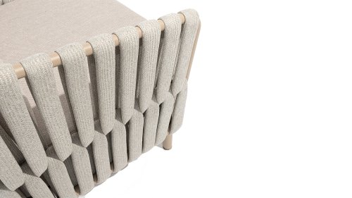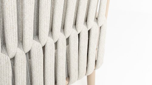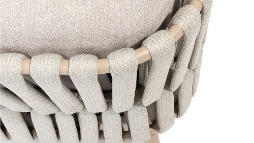 Passion for Eva Designed with an eye for detail. The thick, soft rope straps follow the beautiful organic shape of the frame. Add to that the wonderfully comfortable cushions and you will understand why we are enthusiastic about the Taste by 4 Seasons Outdoor Eva lounge and dining set. The Taste 4SO Eva dining chair has a modern look. The chair is delivered including soft cushions and has a contemporary, aluminum frame with matching, latte rope upholstery. The thick rope combines beautifully with the latte frame and, together with the cushions, ensures a comfortable seating comfort. A color that can best be described as tasteful beige.