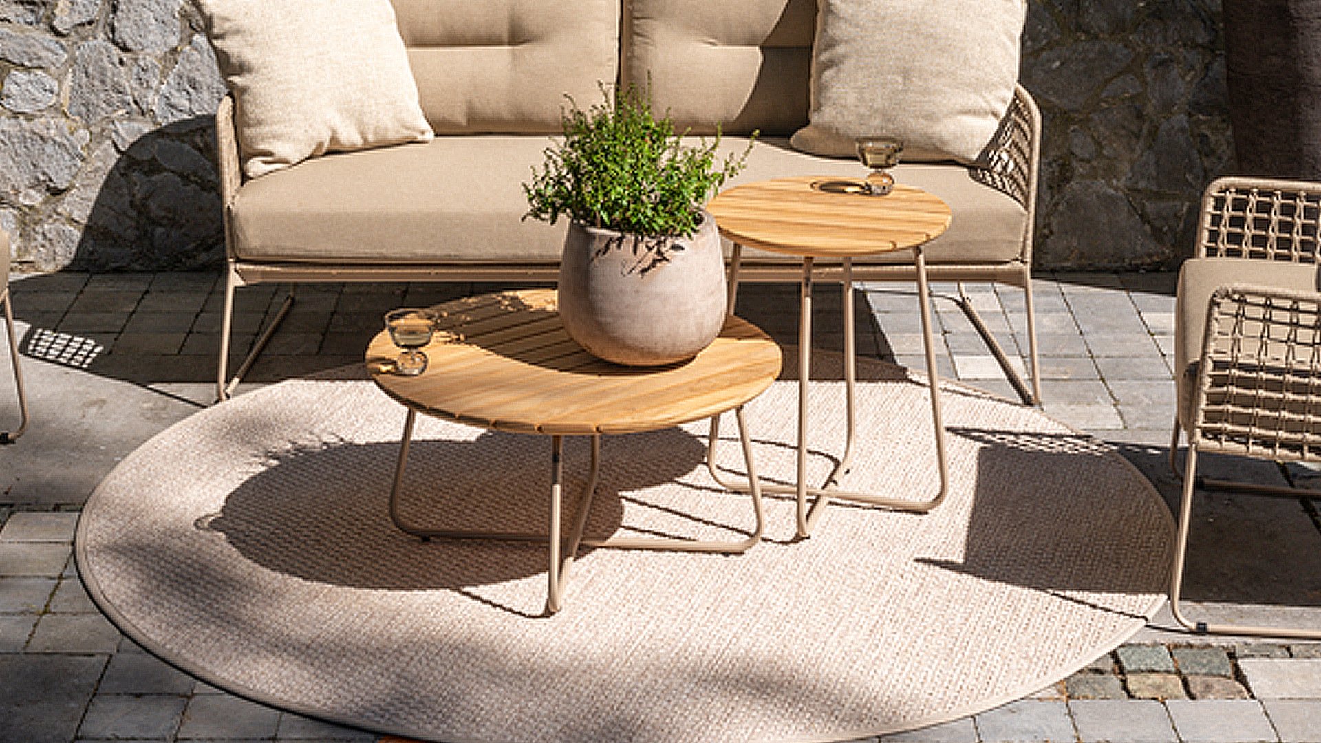 This beautiful material is perfect for outdoor use, because Taste Rope isn't just any shoelace. Taste uses very high-quality rope made from 100% SDP (Solution Dyed Polypropylene). This material is extremely strong and has very little stretch. Polypropylene is oil-based, so dirt and contaminants are virtually insoluble, just like our cushions. Taste offers exclusive designs using hand-woven rope patterns and techniques.