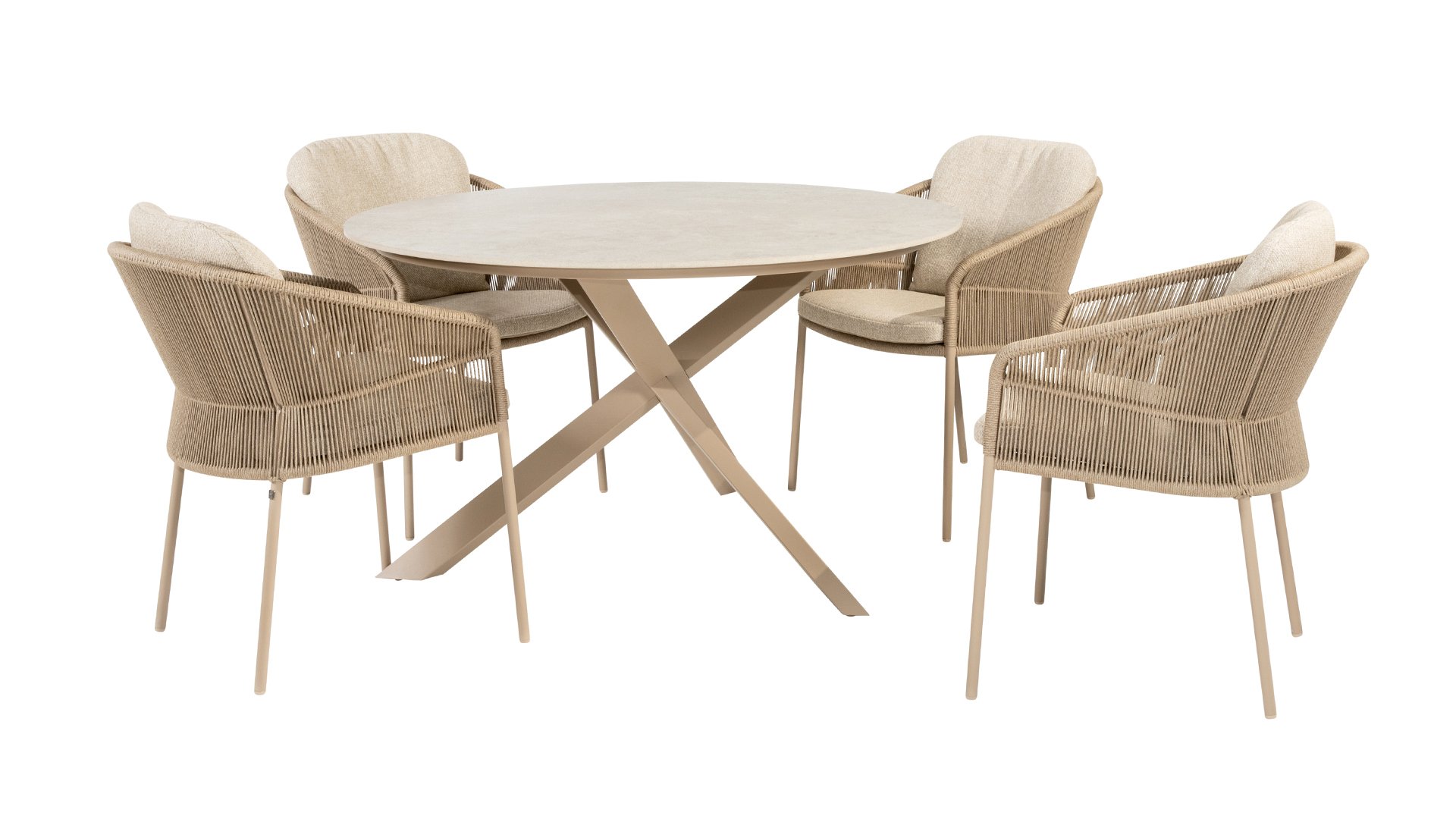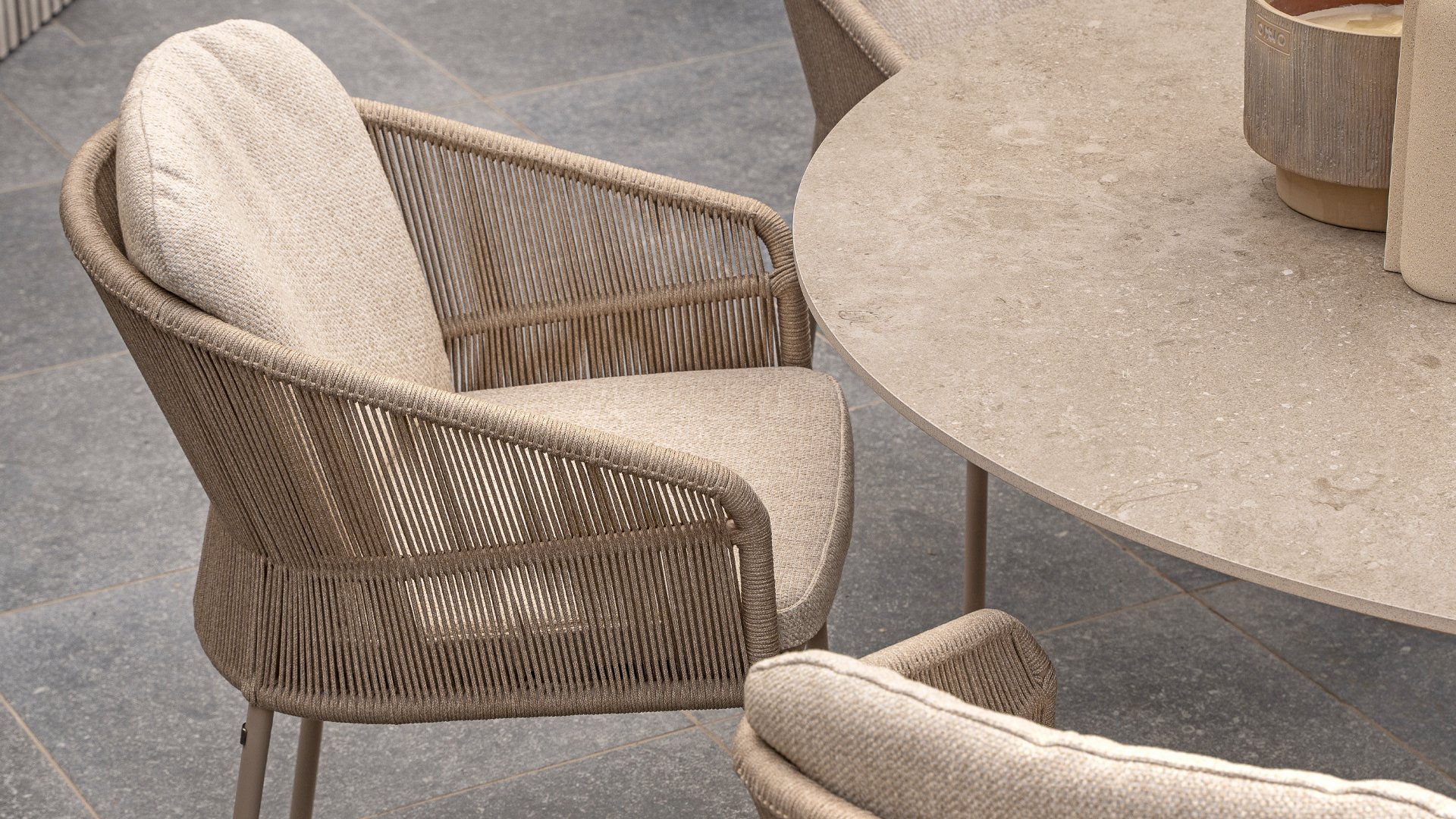 Inspired by the timeless charm of Italy, Florence is characterized by its tightly woven rope pattern and the refined division between the backrest and seat, creating a modern and elegant effect. The comfortable cushions offer excellent seating comfort, making this dining set perfect for long, relaxing moments outdoors. Available in two elegant colors: Taste Florence Dining Terre – a warm, earthy shade that blends perfectly with natural garden elements. Taste Florence Dining Latte – a light, elegant color that creates a fresh, summery look.