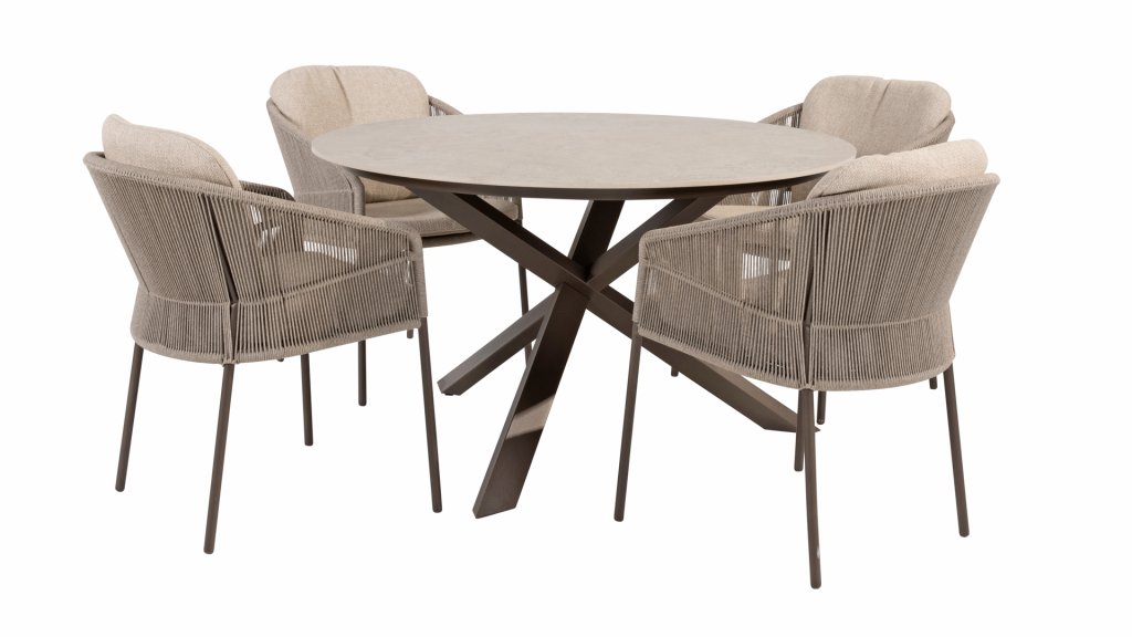 Inspired by the timeless charm of Italy, Florence is characterized by its tightly woven rope pattern and the refined division between the backrest and seat, creating a modern and elegant effect. The comfortable cushions offer excellent seating comfort, making this dining set perfect for long, relaxing moments outdoors. Available in two elegant colors: Taste Florence Dining Terre – a warm, earthy shade that blends perfectly with natural garden elements. Taste Florence Dining Latte – a light, elegant color that creates a fresh, summery look.