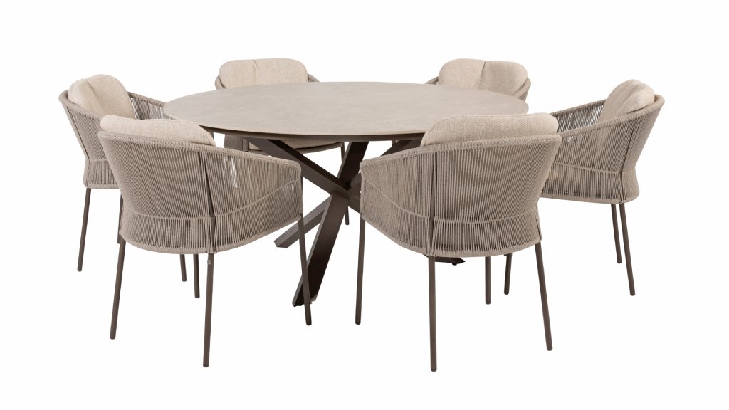 This table is a true gem of the collection. Previously, the Taste Prado Ø160 cm was only available with a teak top. This year, it's also available with a ceramic top. This gives the Prado a completely new look, giving it a sleek, industrial, and modern look. The ceramic version also offers another major advantage: ceramic is, of course, maintenance-free! The Prado with ceramic top is available with the following table legs: Terre & Latte. Still a teak enthusiast? Then check out the Prado teak with the Terre, Teak, Latte, and Anthracite frames.