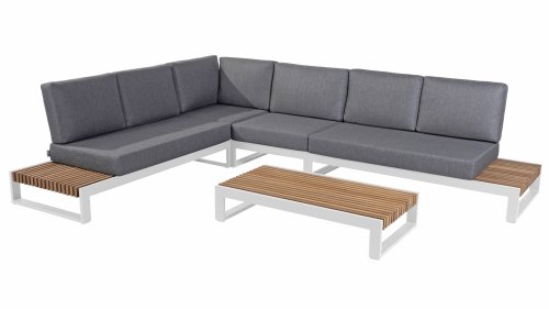 The frame is made of powder-coated aluminum, combined with high-quality teak wood panels on the sides. The narrow slats of the teak wood are immediately noticeable. With the open sides and teak wood top, your drink is always within reach! The cushions in the Taste 4Seasons Kioto lounge set are very comfortable and have a dirt- and water-repellent coating, making them resistant to a rain shower.