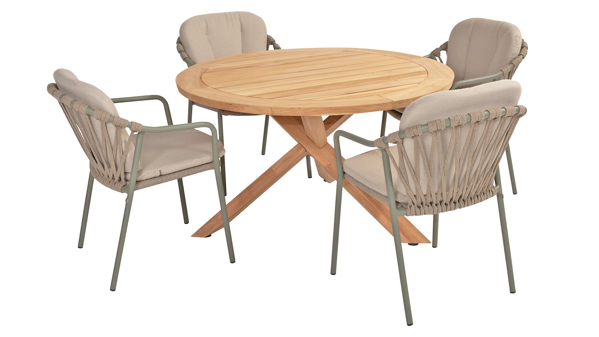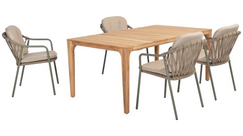 This chair is available in three colors: Latte, (Olive), and Anthracite. The chair comes with comfortable cushions made from Olefin fabric, a weather-resistant material that feels soft and dries quickly. This means you can not only enjoy the comfort of the chair, but also the ease of maintenance. The cushions are included, so you can immediately enjoy the ultimate seating comfort.