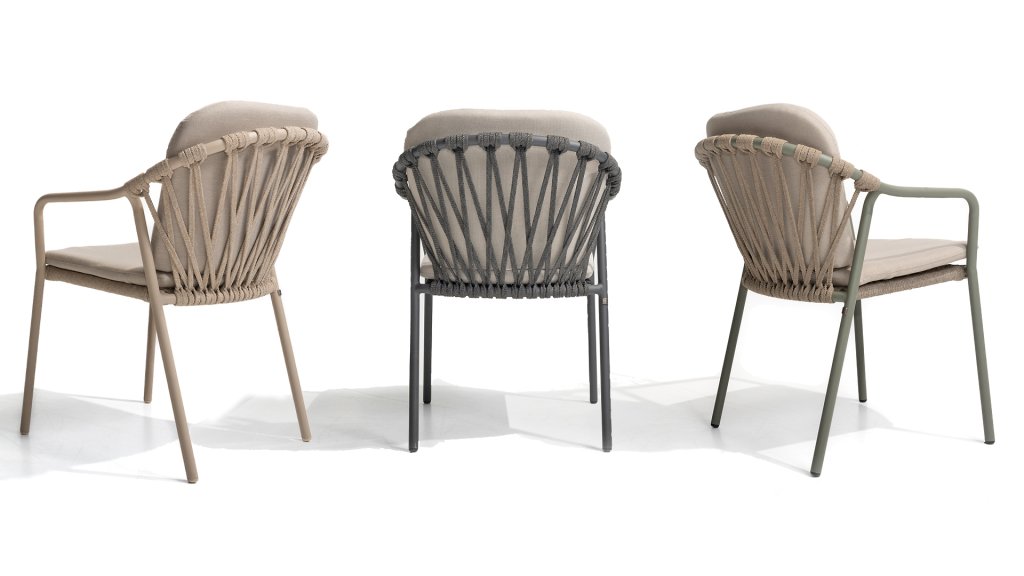 Discover the colorful versatility of the stackable Taste by 4Seasons Manitoba garden chair. Take a look at the playful lines of rope in the back and the graceful design of the frames: Manitoba stackable chairs are very basic, but also very attractive. This chair is available in 3 colors, each equally comfortable and practical. Thanks to the weather-resistant materials and cushions, you can enjoy Manitoba all year round. The Taste Manitoba garden chair is the ideal choice for those looking for both comfort and style in the garden. This garden chair not only has a sleek, modern design, but is also particularly practical because it can be stacked, which is ideal for storage.