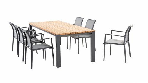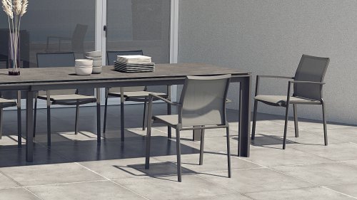 The Taste by 4Seasons Outdoor Melbourne stacking chair is a lightweight high-quality aluminum stacking chair. The seat of the chair is made of textilene, which is already very comfortable to sit on without a cushion. The aluminum does not rust, and the textilene is easy to clean. The dining chair is lightweight and therefore easy to stack and store if desired. Due to the teak armrests, this dining chair is easy to combine with various tables from our Taste 4SO collection.