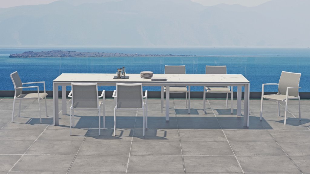 With an extendable table, you always have enough space. Whether you're sitting with your family or a large group of friends, it's all possible with the Optimum extendable table. The ceramic is maintenance-free and the powder-coated aluminum frame will not rust. The central leg will move automatically and provide extra reinforcement to the table.
