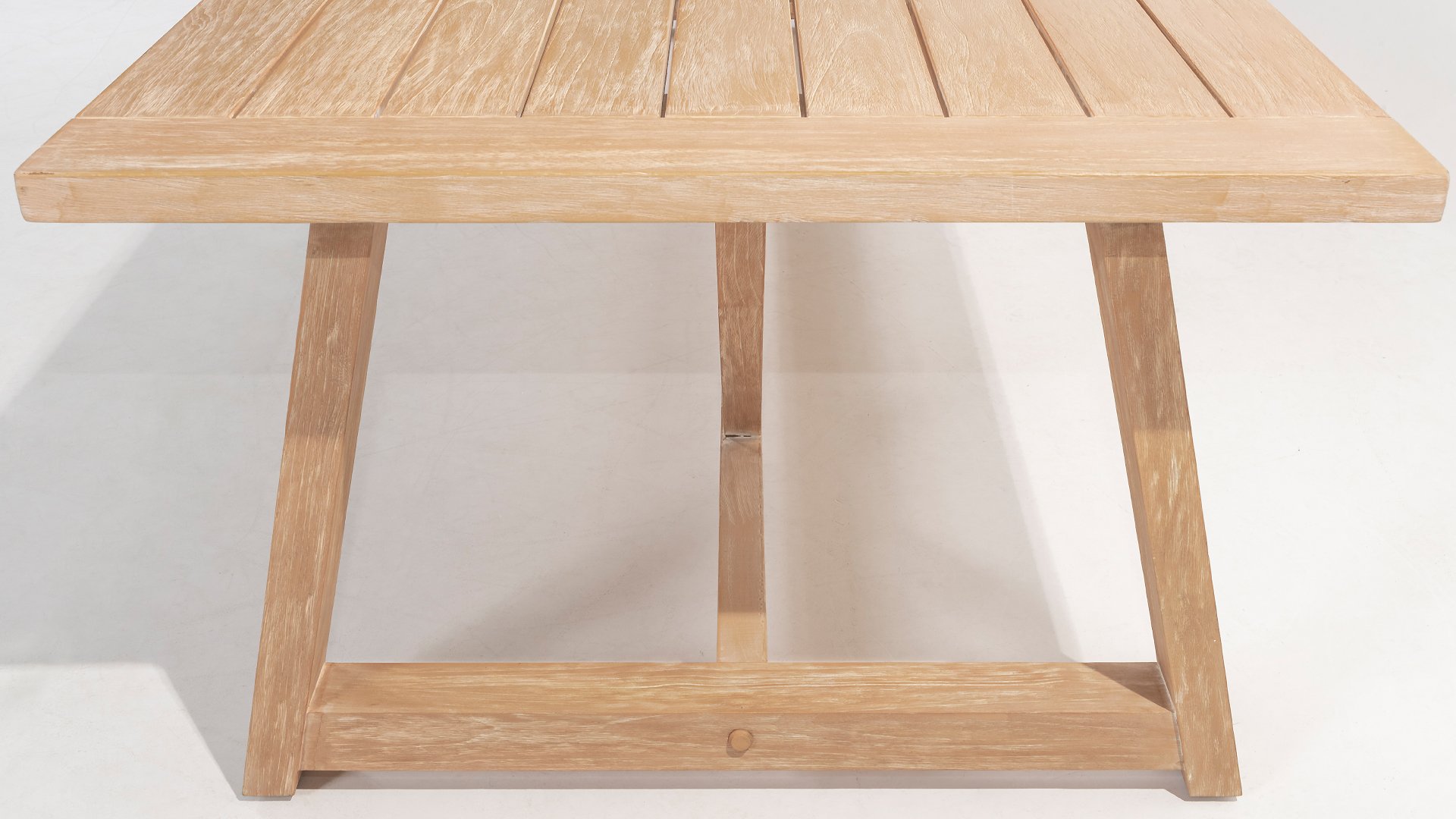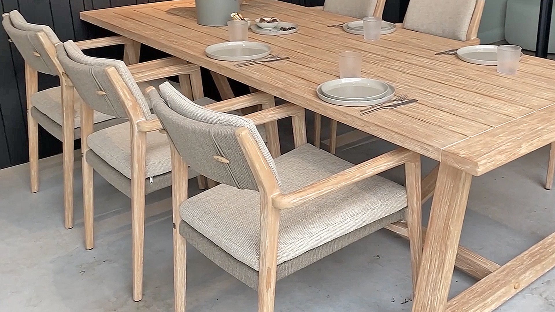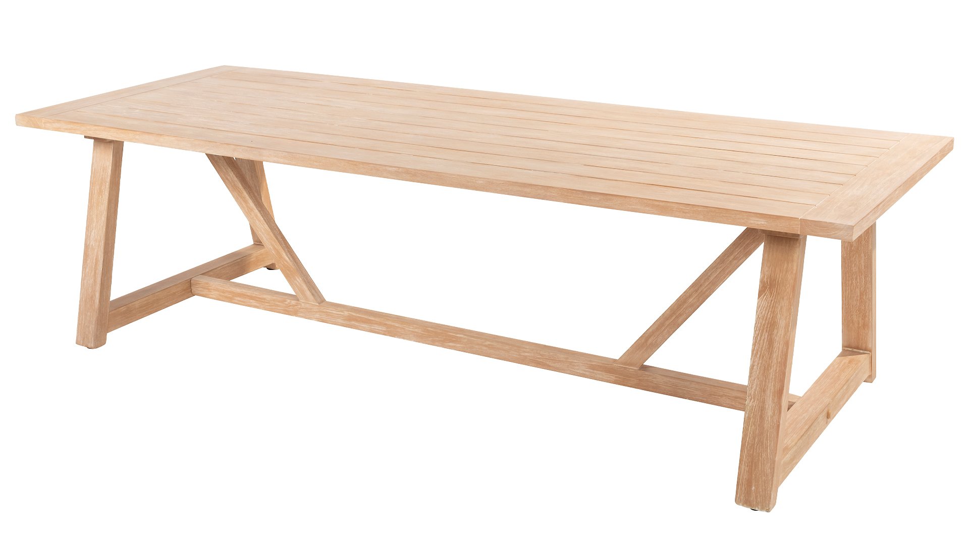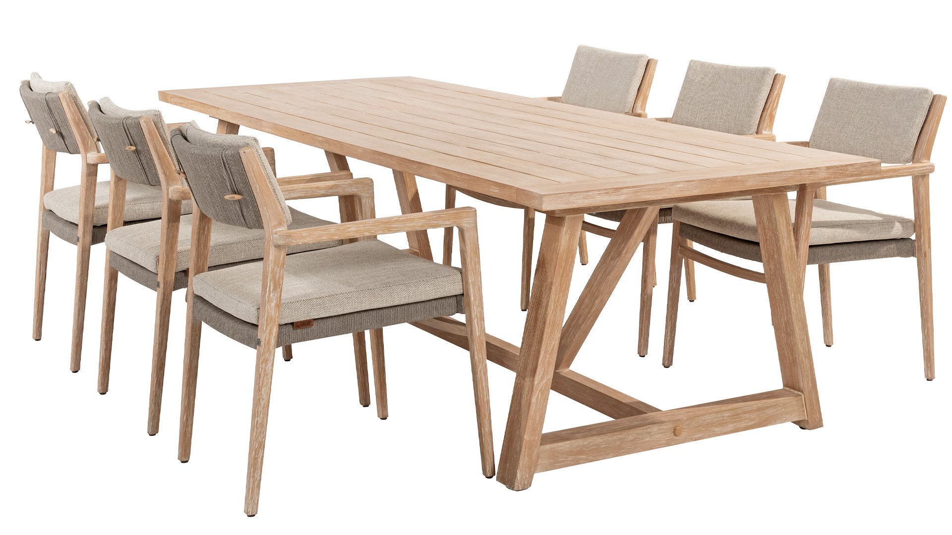The Noah brushed teak table from Taste 4SO is a robust table that exudes elegance. The teak is brushed, meaning it has a rough, natural finish with light highlights in the grooves. This finish gives the table a unique look. The size of 260 provides ample seating space at this table. The Noah table is also available in the regular teak finish, and with a stainless steel base. Come visit our showroom now to explore the options for this beautiful table.