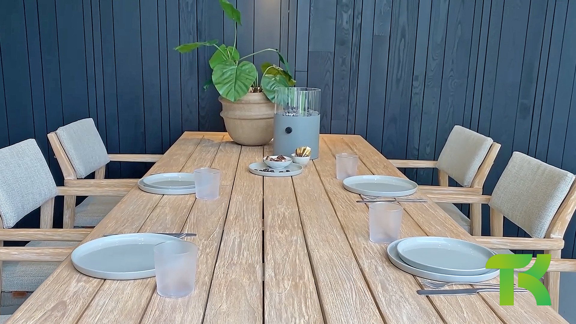 Teak is a natural product and particularly suitable for outdoor use. It is resistant to pests and mold and can withstand sun, rain, and snow. Over time, teak develops a silver-gray patina. Teak is a robust material and requires little maintenance. If you prefer the original color of your teak, you can easily prevent it from turning gray by regularly using our care product. You can also clean teak with green soap. We offer a warranty on all manufacturing and construction defects. This does not include the working of teak. When you choose teak, we expect you to appreciate these qualities. Hairline cracks that may develop, knots in the teak, and rough surfaces or irregular discoloration over time are not covered by our warranty. These characteristics give teak its unique character and appearance; they are part of its natural properties. Be careful with a flowerpot or vase on your teak garden table, as this can cause persistent rings or color variations. Imperfections are common; these imperfections are characteristic of this product. These irregularities can never give ground to a claim, warranty, or complaint. This is a signs ans signature of originality!