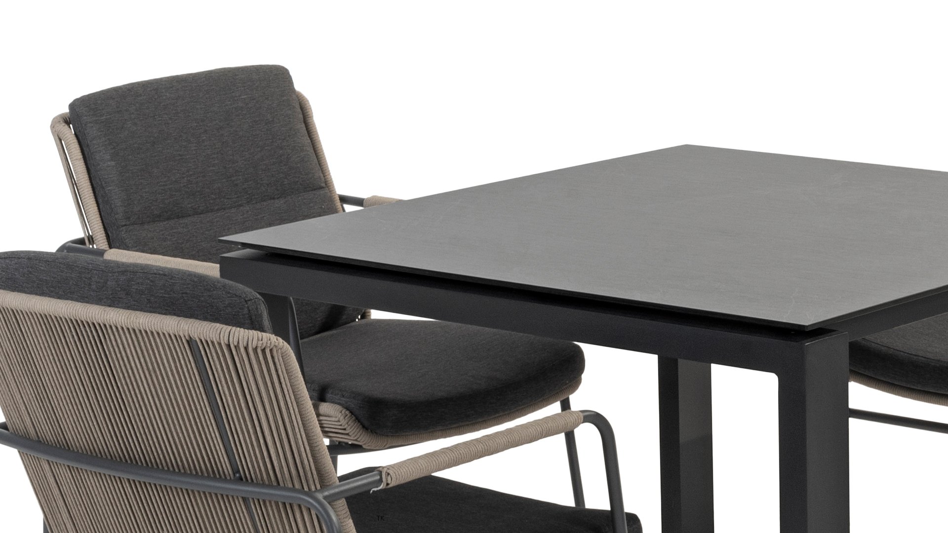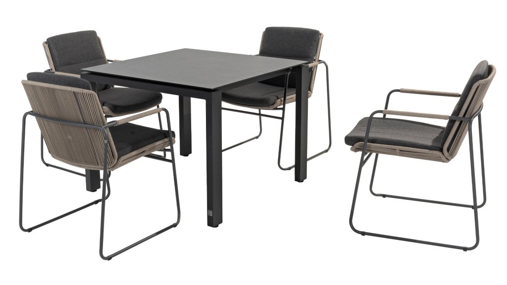 Pretty Parma. They designed these dining chairs in latte color and with an anthracite frame with taupe Rope, view them here: Taste by 4 Seasons Outdoor Parma Latte & Taste by 4 Seasons Outdoor Parma Anthracite. The cushions in the stackable Parma dining chairs are embraced by the woven Rope, creating a cozy feeling. Pretty, Perfect, Parma. The Taste 4SO stackable Parma dining chair offers a harmonious combination of comfort and modern design for your outdoor space. This chair is designed not only to sit comfortably, but also to enhance your outdoor space. The seat and back cushion are beautifully enclosed by the rope frame, a subtle design detail of this beautiful chair.