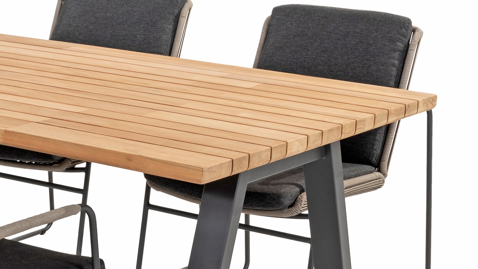 The teak garden table Ambassador is a popular model within the beautiful range of Taste 4SO. Ambassador tables. A striking detail of the teak top of the Ambassador table is the different widths of the planks. This beautiful effect is clearly visible in the detail photos. It provides an original and contemporary look. The base is made of powder-coated stainless steel.