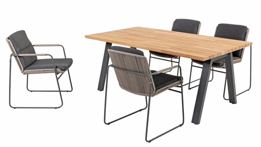 Pretty Parma. These dining chairs have been designed in latte color and anthracite frame with taupe Rope, view them here: Taste by 4 Seasons Outdoor Parma Latte & Taste by 4 Seasons Outdoor Parma Anthracite. The cushions in the stackable Parma dining chairs are embraced by the woven Rope, creating a cozy feeling. Pretty, Perfect, Parma. The Taste 4SO stackable Parma dining chair offers a harmonious combination of comfort and modern design for your outdoor space. This chair is designed not only to sit comfortably, but also to enhance your outdoor space. The seat and back cushion are beautifully surrounded by the frame with rope, a subtle design detail of this beautiful chair.