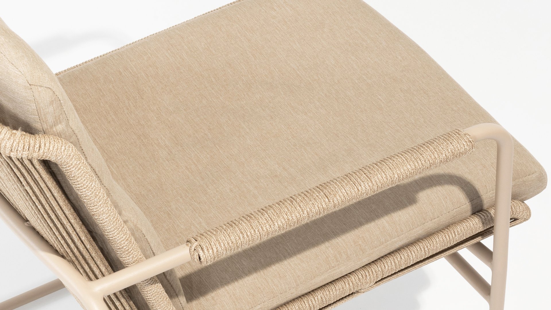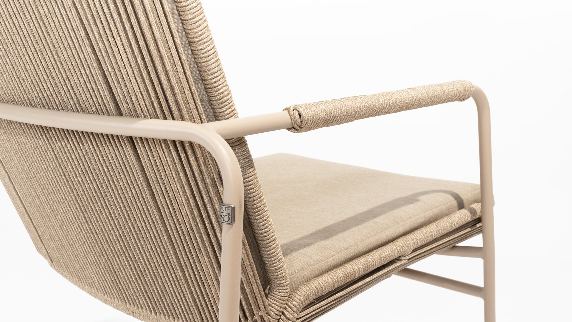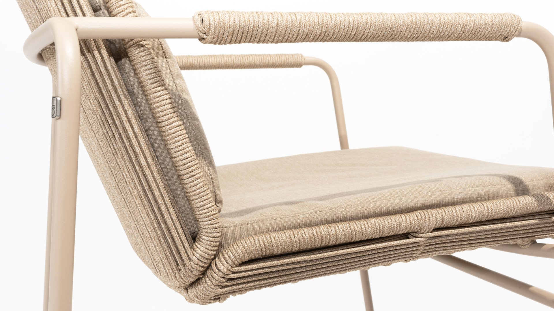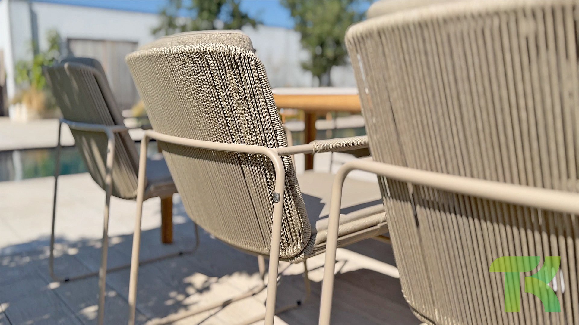 The latte rope upholstery and latte stainless steel frame give the Parma dining chair a contemporary and timeless look that fits into any outdoor setting. The soft armrests provide extra comfort during long meals and relaxing evenings.