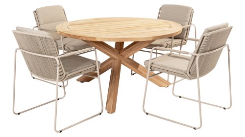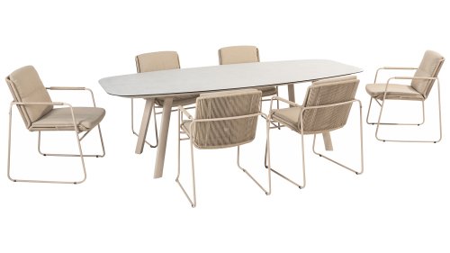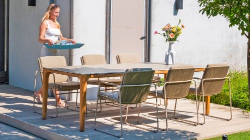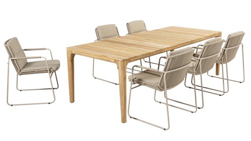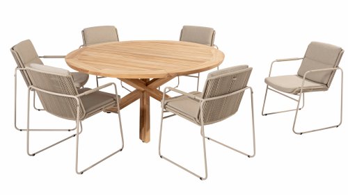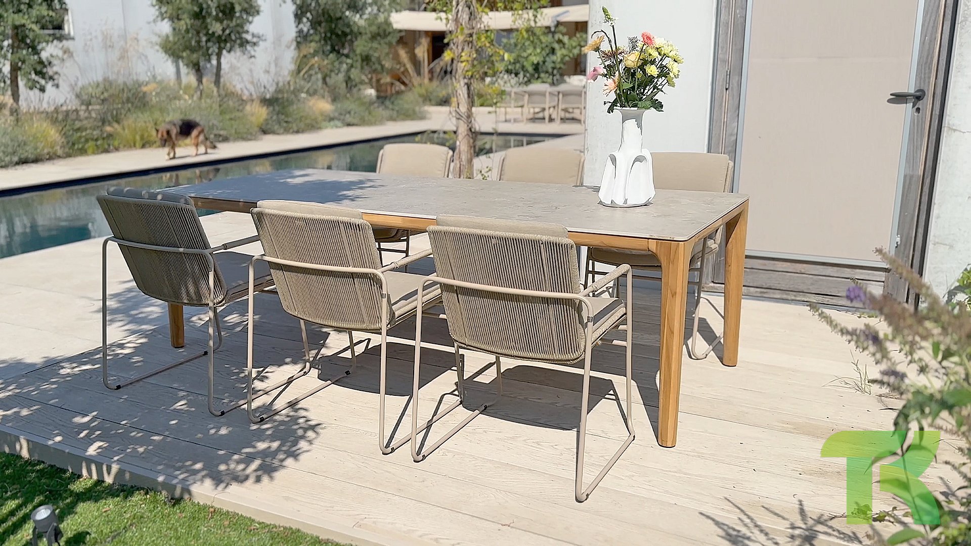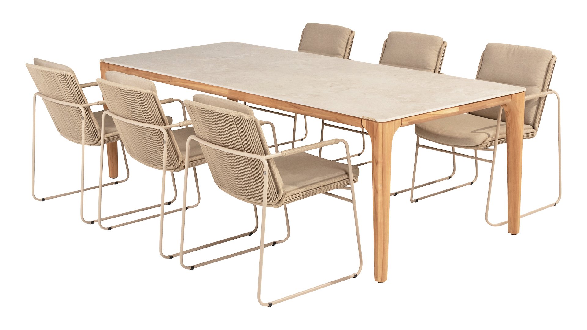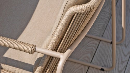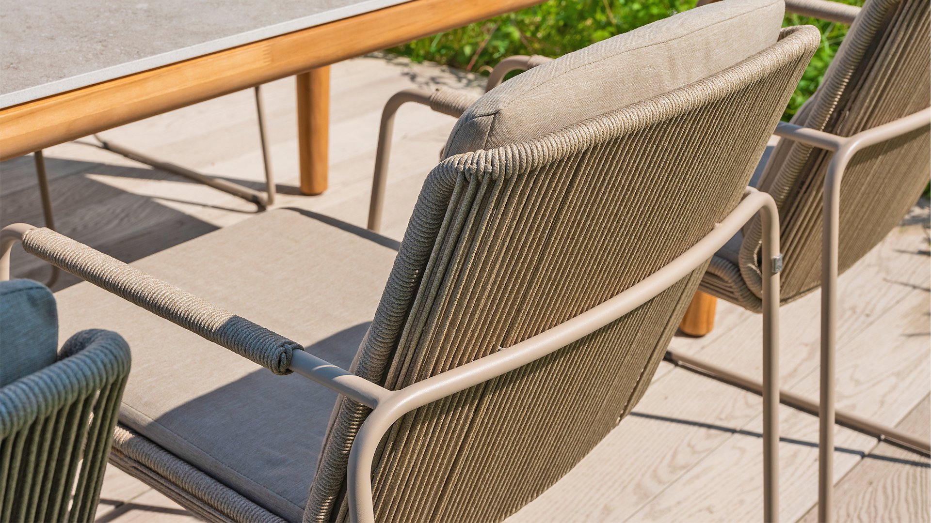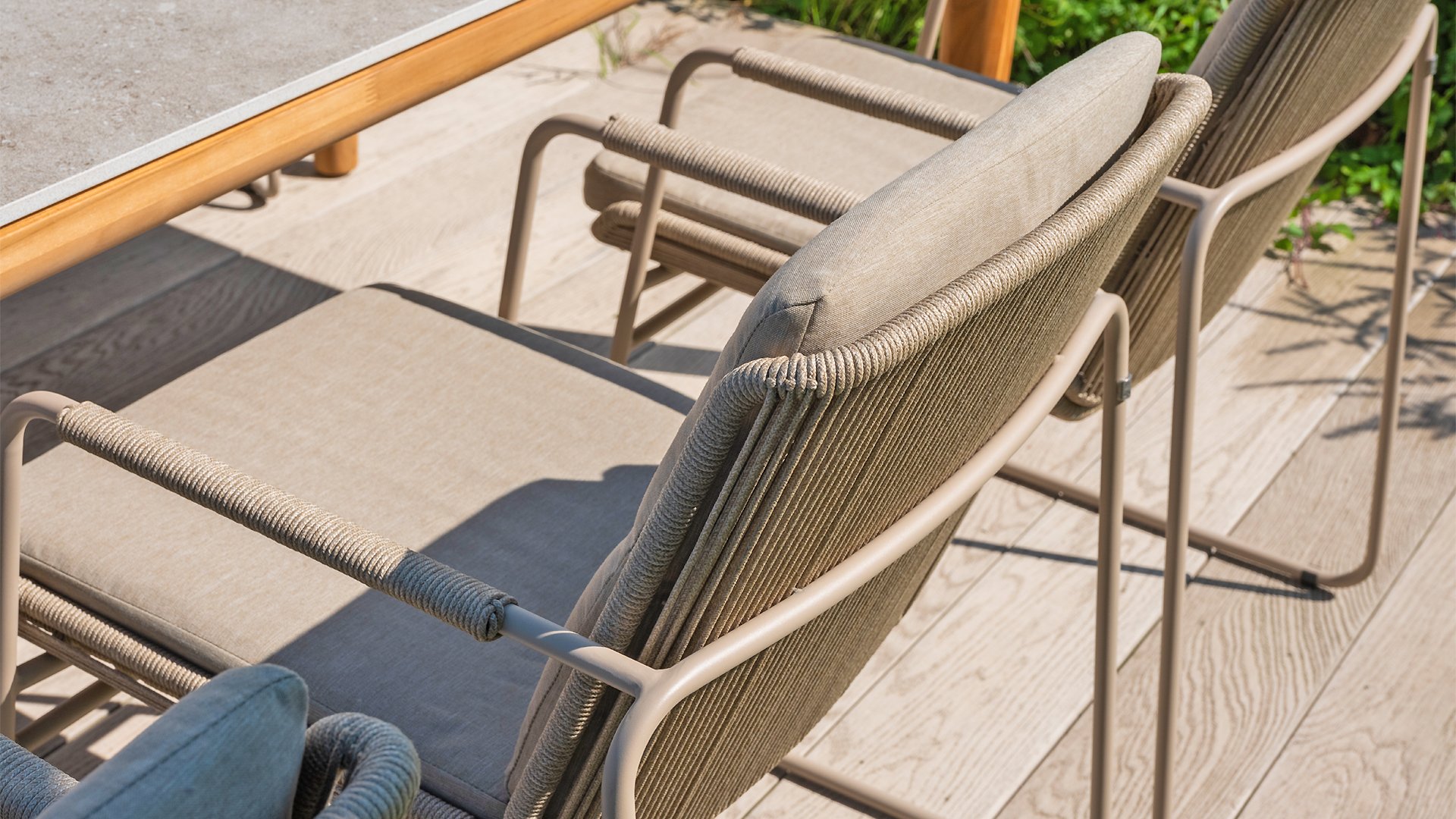 Pretty Parma. These dining chairs are designed in latte color and anthracite frame with taupe Rope, view them here: Taste by 4 Seasons Outdoor Parma Latte & Taste by 4 Seasons Outdoor Parma Anthracite. The cushions in the stackable Parma dining chairs are embraced by the woven Rope, creating a cozy feeling. Pretty, Perfect, Parma.