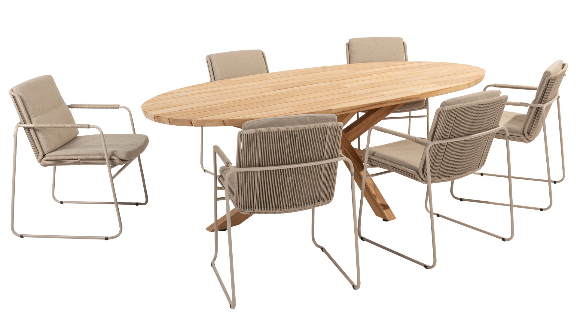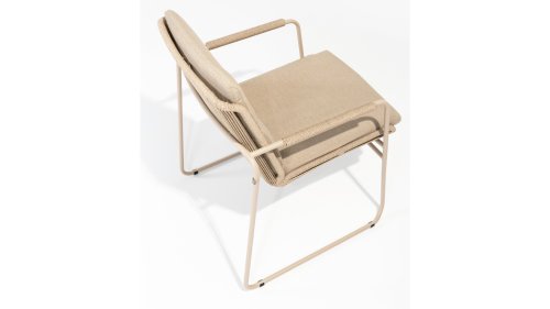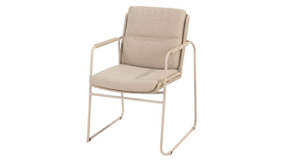 Pretty Parma. These dining chairs have been designed in latte color and in anthracite frame with taupe Rope, view them here: Taste by 4 Seasons Outdoor Parma Latte & Taste by 4 Seasons Outdoor Parma Anthracite. The cushions in the stackable Parma dining chairs are embraced by the woven Rope, creating a cozy feeling. Pretty, Perfect, Parma. The Taste 4SO stackable Parma dining chair offers a harmonious combination of comfort and modern design for your outdoor space. This chair is designed not only to sit comfortably but also to beautify your outdoor area. The seat and back cushions are beautifully enclosed by the rope frame, a subtle design detail of this beautiful chair.