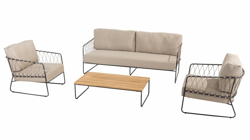 The Taste by 4Seasons Prego lounge is made with taupe rope and has a stylish anthracite frame, which is not only durable but also adds a contemporary touch to your outdoor space. With the included cushions, you can relax in luxury and comfort for hours. With the Taste 4SO Prego lounge, you can enjoy the perfect combination of aesthetics and comfort. Transform your outdoor space into a relaxation oasis with this contemporary lounge.
