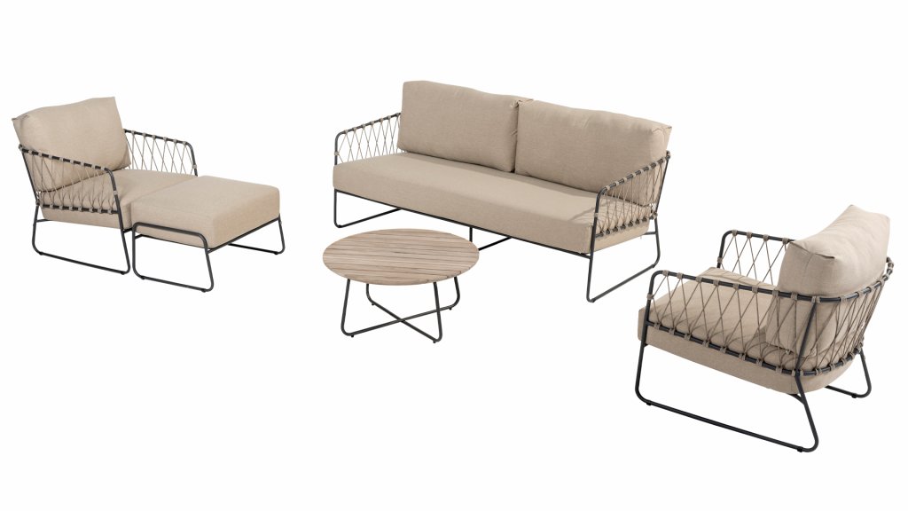 The Taste by 4Seasons Prego lounge is made with taupe rope and has a stylish anthracite frame, which is not only durable but also adds a contemporary touch to your outdoor space. With the included cushions, you can relax in luxury and comfort for hours. With the Taste 4SO Prego lounge, you can enjoy the perfect combination of aesthetics and comfort. Transform your outdoor space into an oasis of relaxation with this contemporary lounge.