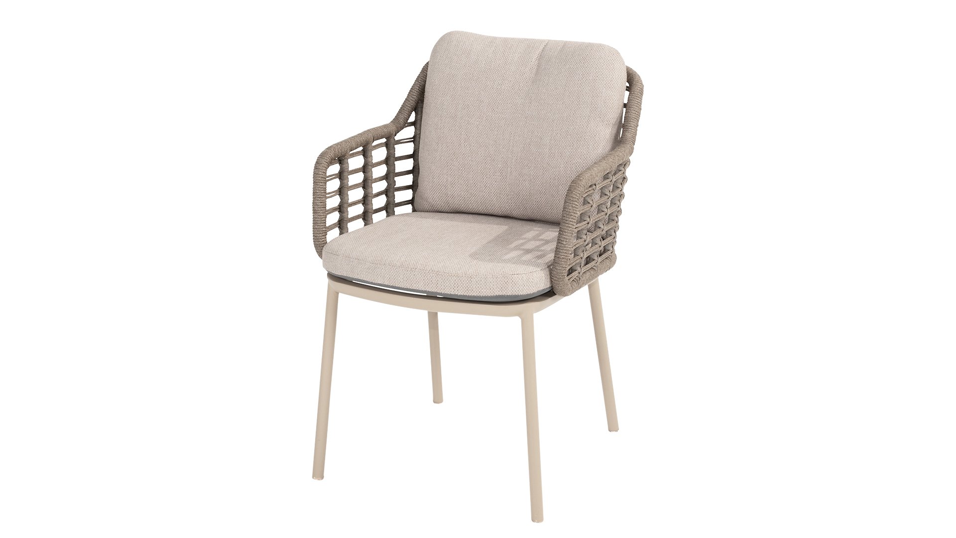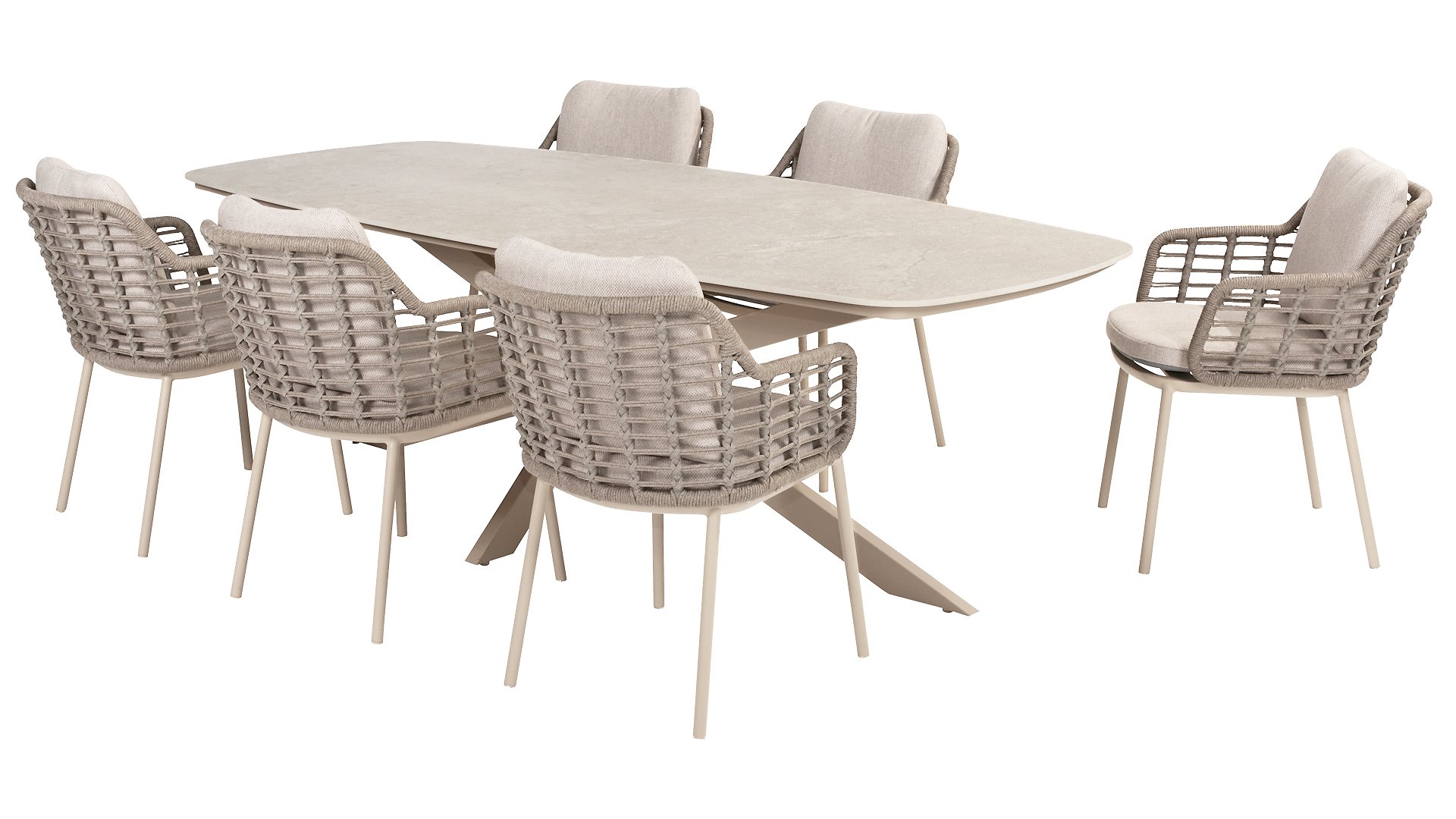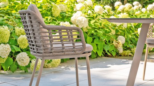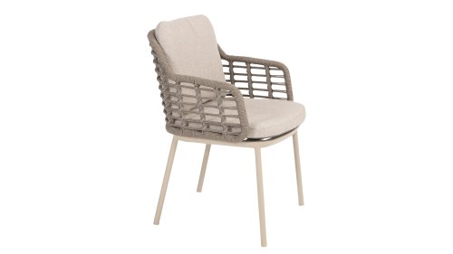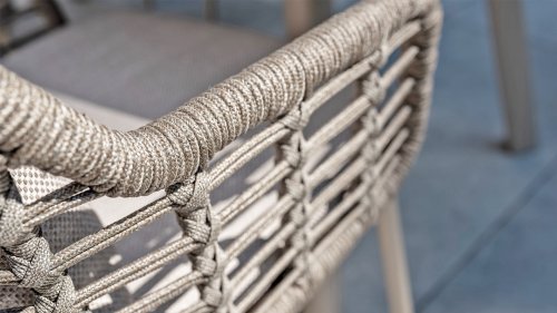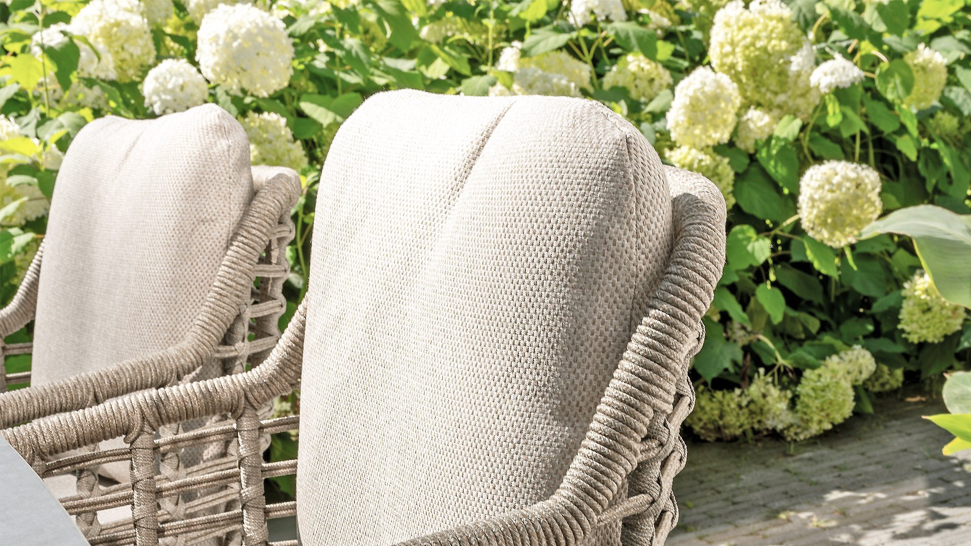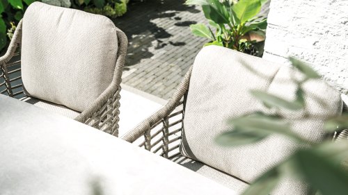 Bring the warm, authentic atmosphere of Southern Italy to your own patio. This collection is an absolute must-have for those seeking a combination of high-quality design, organic shapes, and ultimate seating comfort. The strength of the Puglia series lies in its clever blend of materials. The frame is made of powder-coated aluminum; lightweight and rustproof. The back and armrests are expertly woven with high-quality rope thread. This gives the chairs and benches an open, airy look that fits perfectly in the modern garden. To complete the comfort, the furniture is fitted with cushions made of Olefin fabric. This material is not only wonderfully soft but also dirt-repellent and weather-resistant. So, an unexpected summer shower is no problem at all. The Taste 4Seasons Puglia series is available in two beautiful colorways, each with its own unique possibilities: