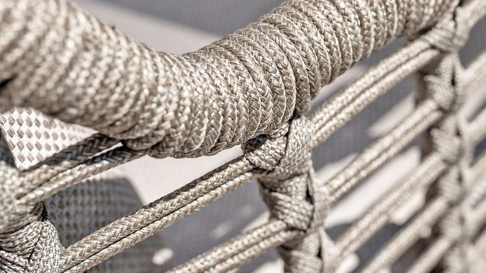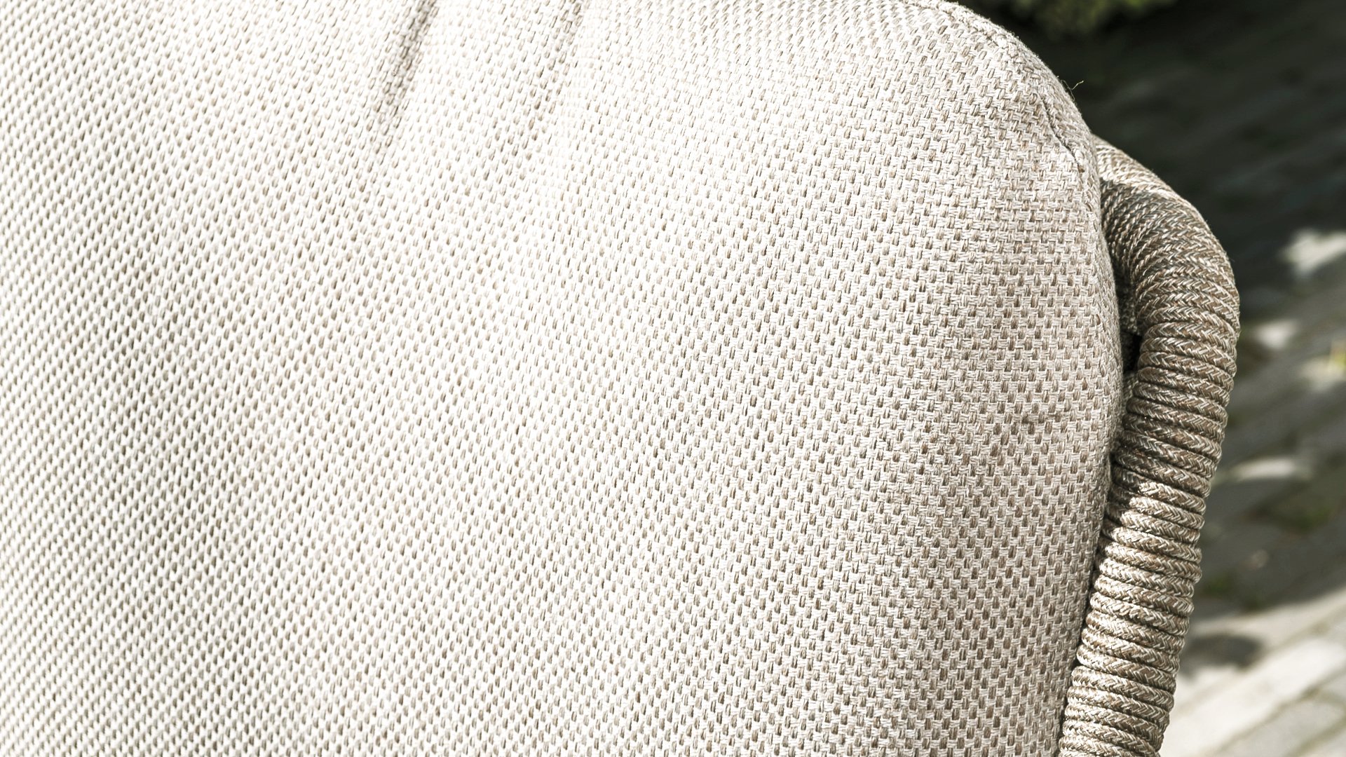 This beautiful material is perfect for outdoor use, because Taste Rope is not just any ordinary shoelace-like cord. Taste uses extremely high-quality rope made from 100% SDP (Solution Dyed Polypropylene). This material is extremely strong and has very little stretch. Polypropylene is oil-based, which means dirt and contaminants can barely penetrate it — just like with our cushions. Taste offers exclusive designs that make use of hand-woven rope patterns and techniques.