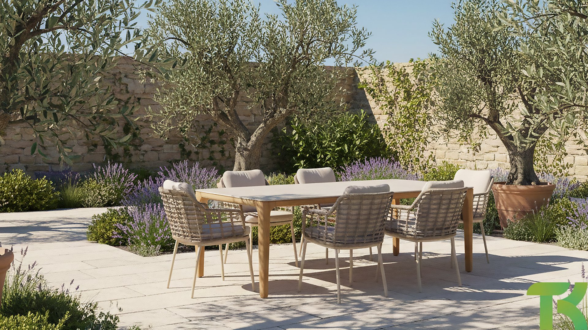 Bring the warm, authentic atmosphere of Southern Italy to your own patio. This collection is an absolute must-have for those seeking a combination of high-quality design, organic shapes, and ultimate seating comfort. The strength of the Puglia series lies in its clever blend of materials. The frame is made of powder-coated aluminum; lightweight and rustproof. The back and armrests are expertly woven with high-quality rope thread. This gives the chairs and benches an open, airy look that fits perfectly in the modern garden. To complete the comfort, the furniture is fitted with cushions made of Olefin fabric. This material is not only wonderfully soft but also dirt-repellent and weather-resistant. So, an unexpected summer shower is no problem at all. The Taste 4Seasons Puglia series is available in two beautiful colorways, each with its own unique possibilities: