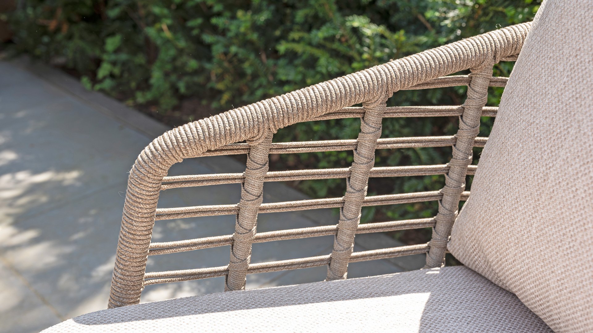 This beautiful material is perfect for outdoor use, because Taste Rope isn't just any shoelace. Taste uses very high-quality rope made from 100% SDP (Solution Dyed Polypropylene). This material is extremely strong and has very little stretch. Polypropylene is oil-based, so dirt and contaminants are virtually insoluble, just like our cushions. Taste offers exclusive designs using hand-woven rope patterns and techniques.