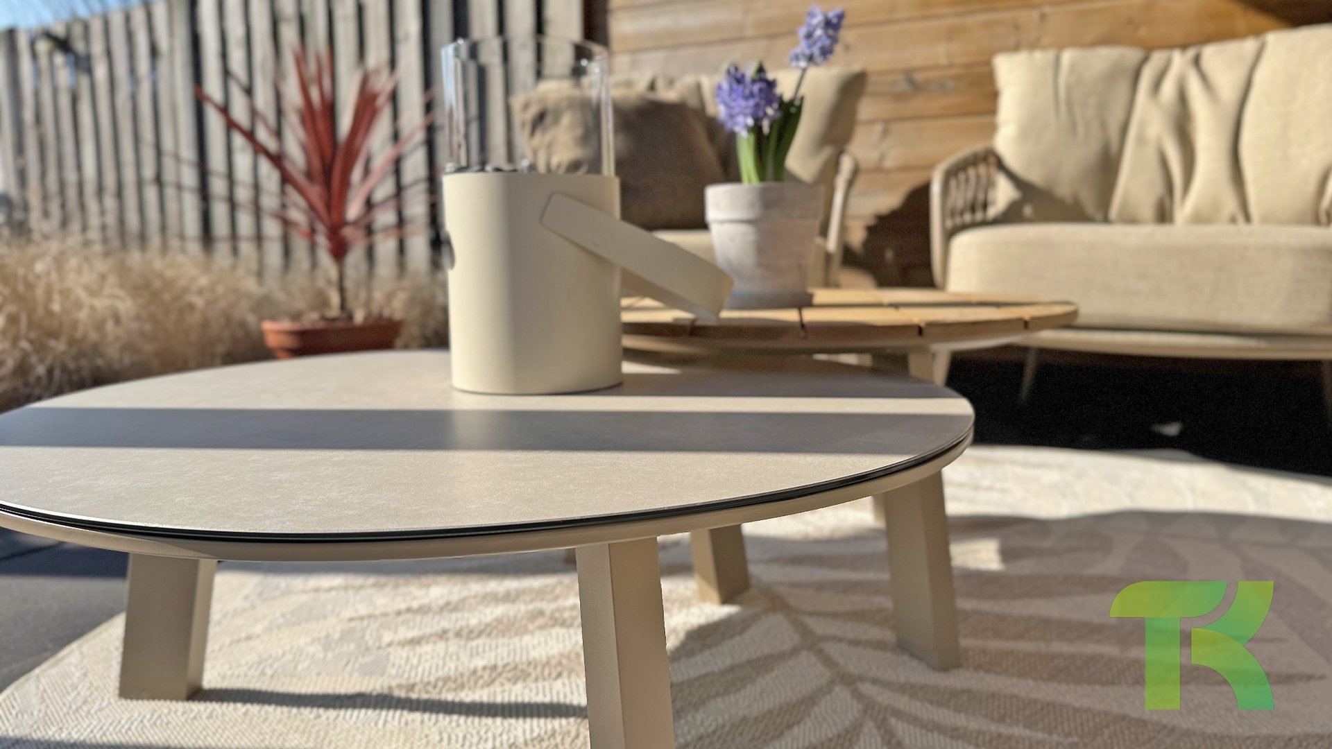 It takes 2 to tango Why choose one coffee table when you can have two? With the Taste 4Seasons Emma coffee table set, we always give you one table with a teak top and one with a ceramic glass top. Choose the color that matches your lounge set: latte or anthracite.