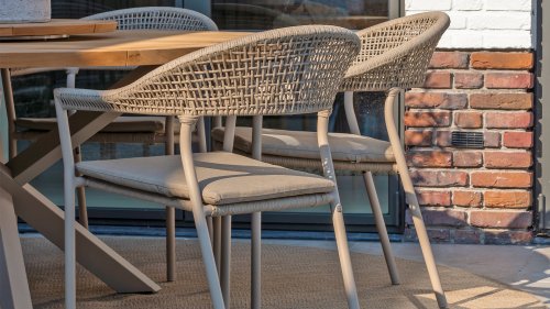 Did you know that Sienna refers to a historic city full of warm hues, soft curves, and Mediterranean elegance? That same refined atmosphere is reflected in the design of the Taste by 4 Seasons Outdoor Sienna garden chair. The flowing lines and stylish rope wickerwork exude tranquility, comfort, and modern design. Take a seat, let the ergonomic curves embrace you, and enjoy—whether you're soaking up the sun or relaxing in the shade. The Taste 4SO Sienna has a unique character that combines craftsmanship with ease of use. The hand-woven rope, combined with the aluminum frame, creates an airy, lightweight garden chair whose flowing lines create a playful and minimalist aesthetic. Moreover, the Sienna is not only beautiful but also practical: the chairs are stackable and therefore easy to store. Available in several stylish colors: Latte, Terre and Anthracite, you're sure to find a version that perfectly matches your garden or patio.