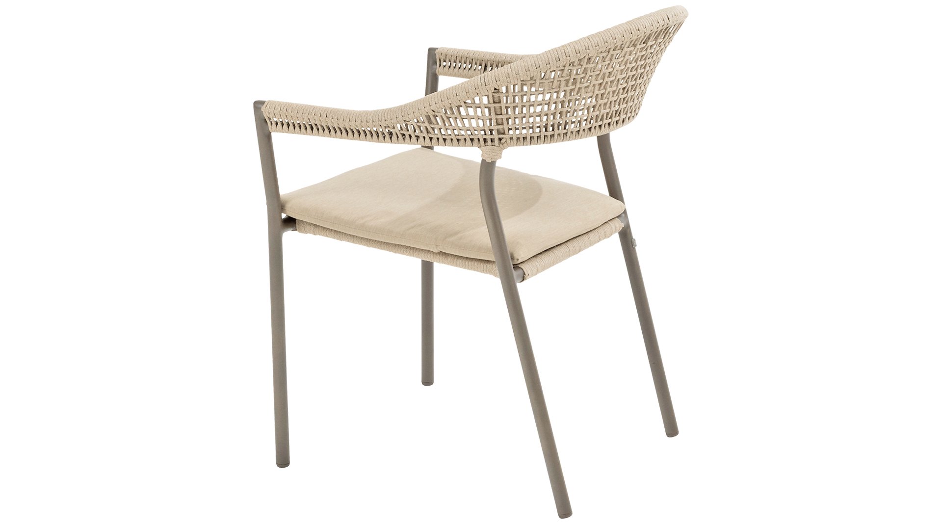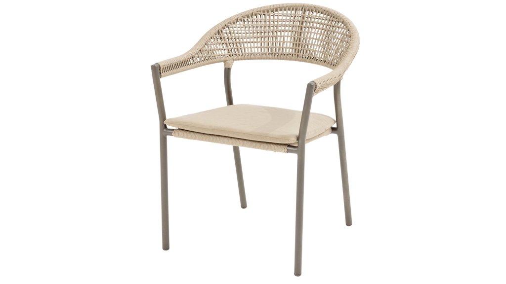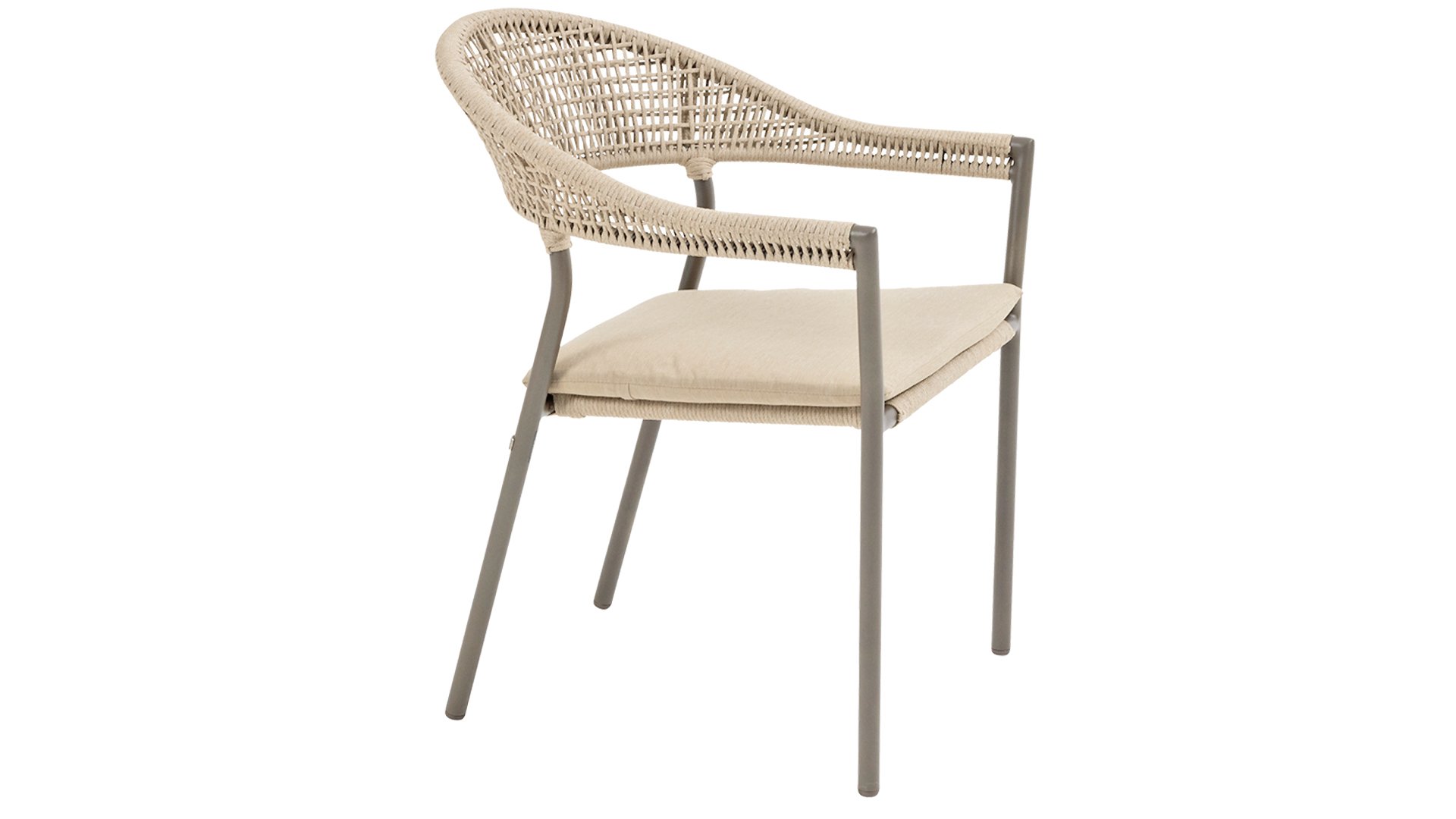 The Taste Sienna patio set has its own unique style, complete with modern rope! The beauty lies in the details. The back of the Sienna dining set by Taste by 4Seasons is woven from rope, providing a sturdy yet comfortable seat. The frame creates a playful and minimalist interplay of flowing lines, forming a solid framework. A feast for the eyes! The Sienna is available in Latte, Terre and Anthracite.