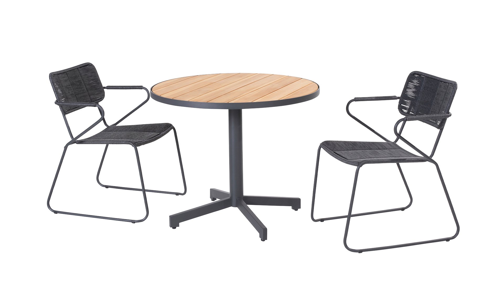 2 x Taste Swing Dining stackable chair Anthracite1 x Taste Fiesta table Ø 90cm Teak-AluTaste 4Seasons Swing