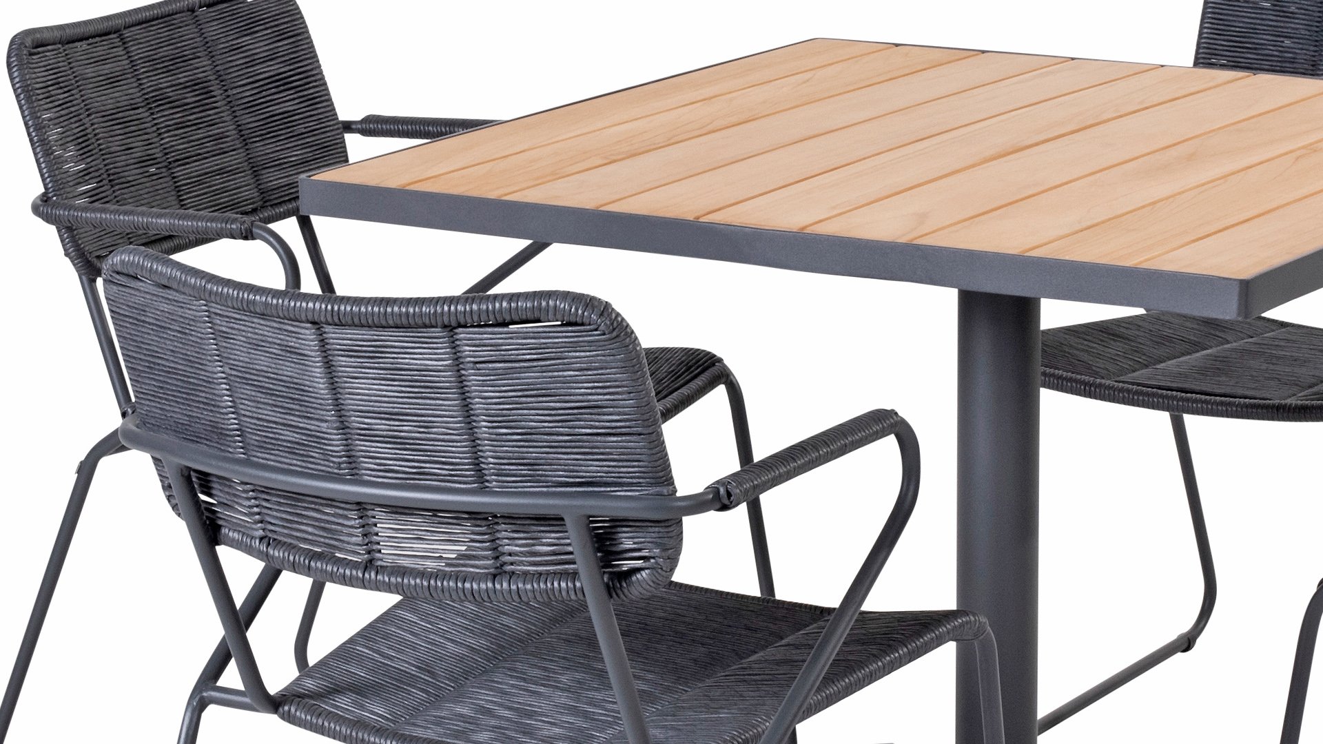 The Taste by 4Seasons Fiesta table is a beautifully finished dining table. Just look at the sleek aluminum edge that runs around the warm teak wood. The Fiesta can be combined with practically all dining chairs from our assortment. The Fiesta series also includes a bar table and a round Ø90cm bistro table.