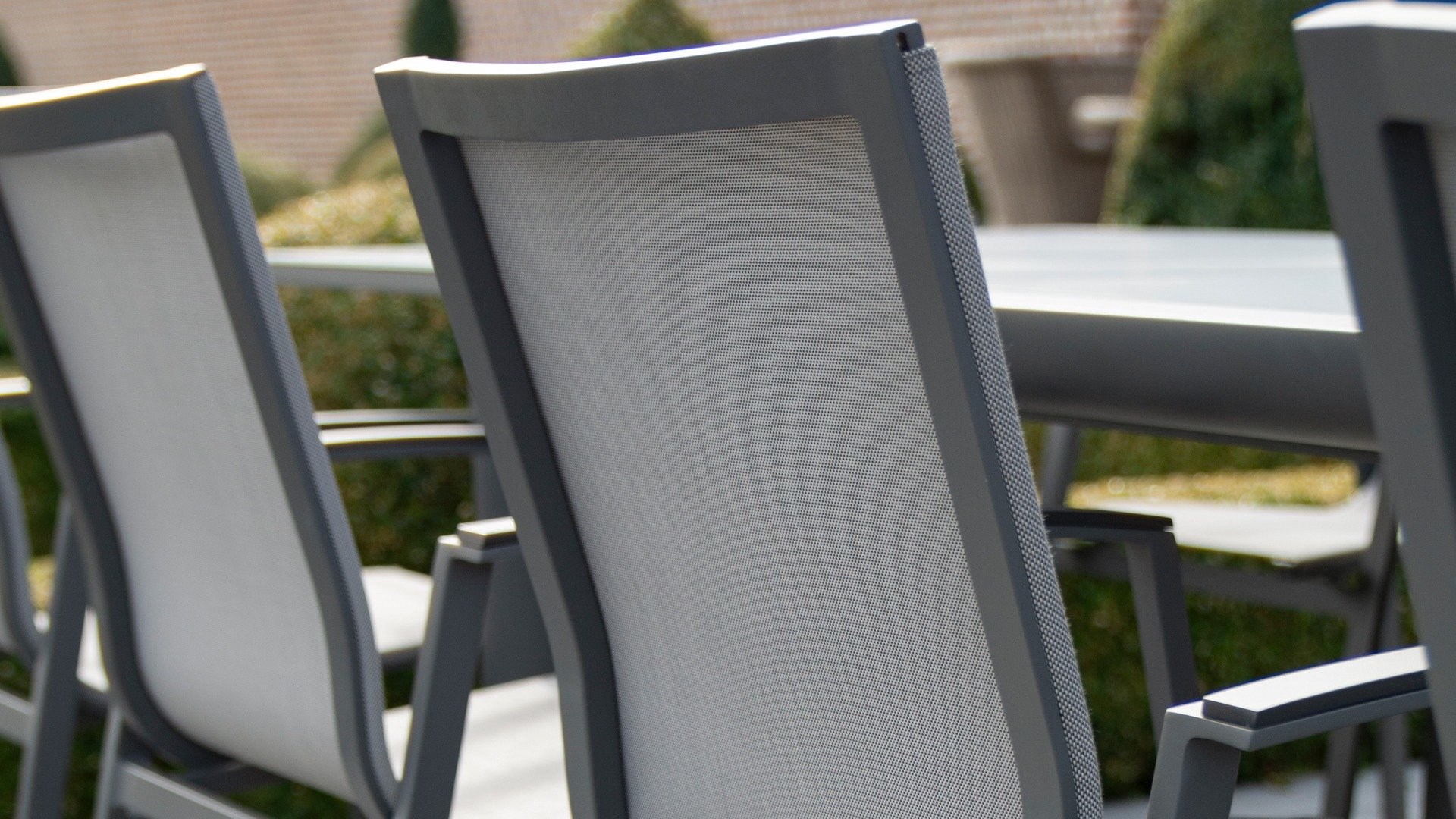 Textilene is made of woven polyester fibers that together form a robust fabric. Thanks to its composition, it is a very durable, long-lasting, dimensionally stable, and colorfast material. As it is a woven fabric, it is water-permeable and dries quickly. This gives it a long lifespan and makes it ideal for outdoor use. Textilene is easy to care for and therefore particularly practical for outdoor applications. It is easy to clean because it is primarily made of polyester. All these properties make Textilene a pleasant material for outdoor use.