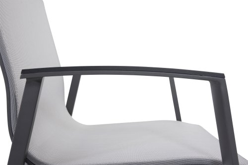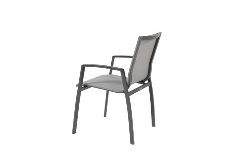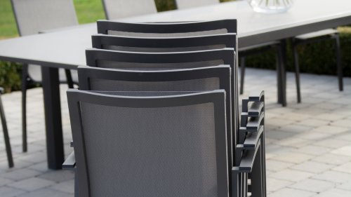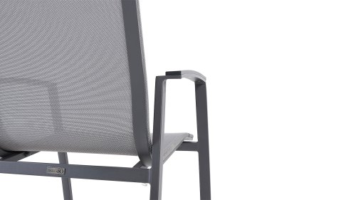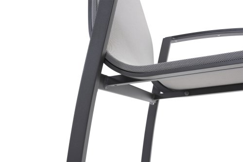 The frame of the Taste by 4 Seasons Outdoor Torino garden chair is made of aluminum, and the seat and back are made of weather-resistant textilene. Textilene ensures optimal seating comfort! The Taste Torino garden chair is stackable and available in the colors: Anthracite & White. Beautiful and timeless, the Taste 4SO garden chair fits perfectly on the terrace. Additionally, the armrests of the Torino garden chairs are enhanced with a durable plastic in a perfectly matching and beautifully contrasting color. Thanks to the flexible back textilene, you will sit comfortably on every occasion as the backrest adapts to the shape of your back. The garden chair is very lightweight and stackable. This allows you to easily store the chair in winter without taking up much space.