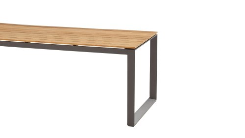 The Taste by 4 Seasons Outdoor Heritage Table 220cm Anthracite Teak, is a high-quality table. The industrial design with its elegant sleigh leg is easy to combine with the entire 4 Seasons dining collection. The aluminum frame is powder-coated and will not rust. The teak wood does not need to be treated. If you want to prevent natural graying, you can use the 4Seasons Protector.