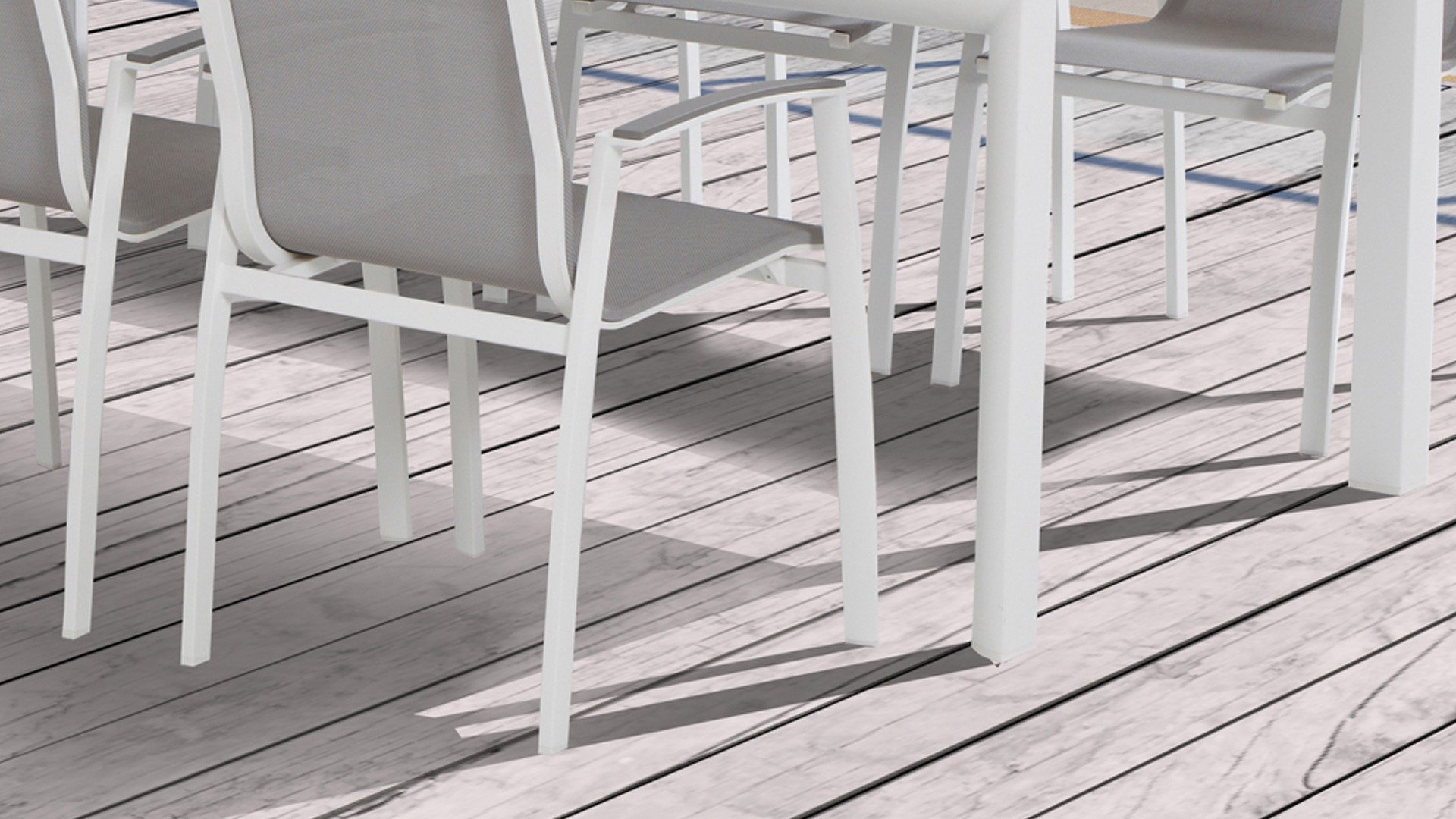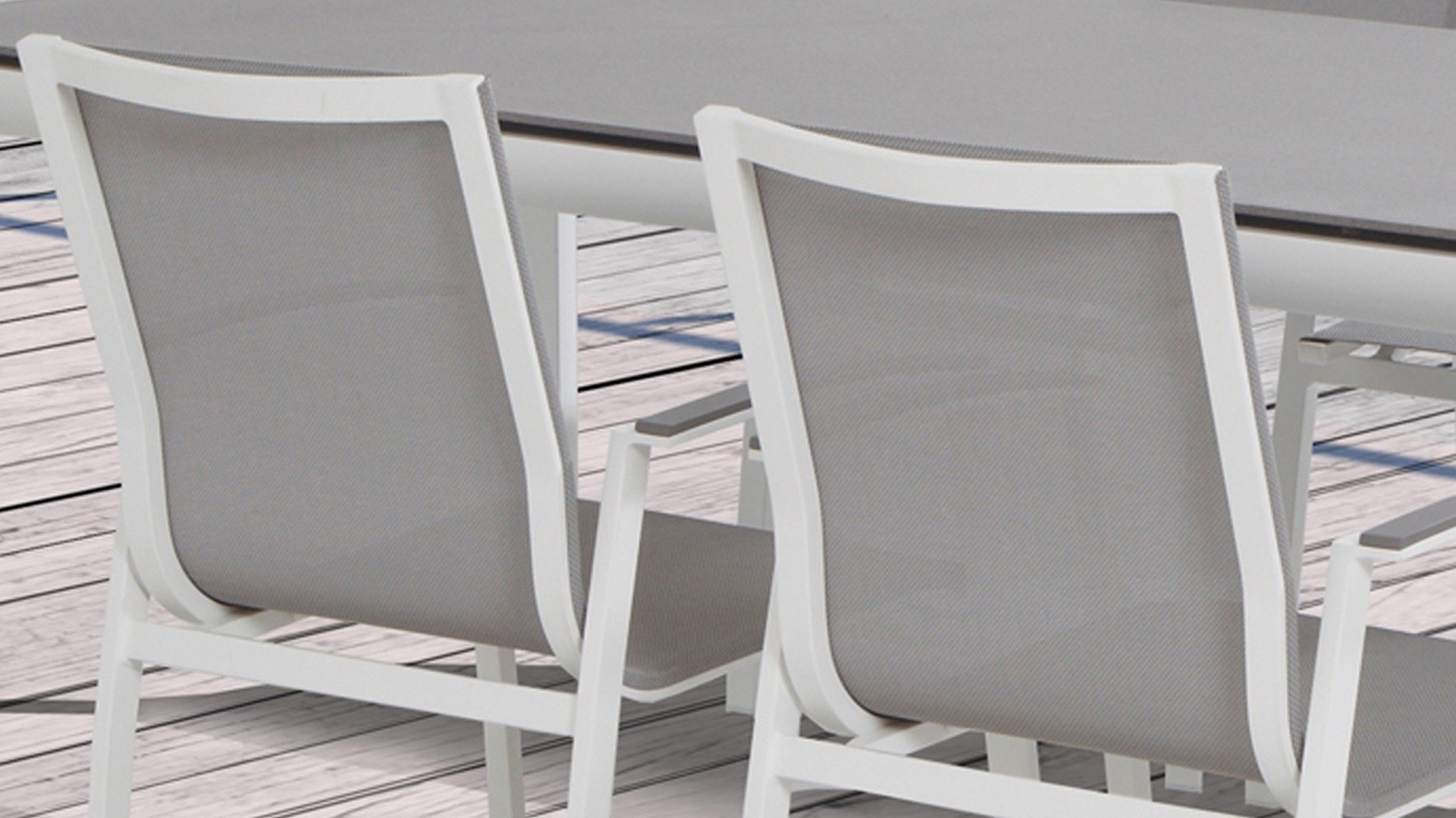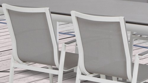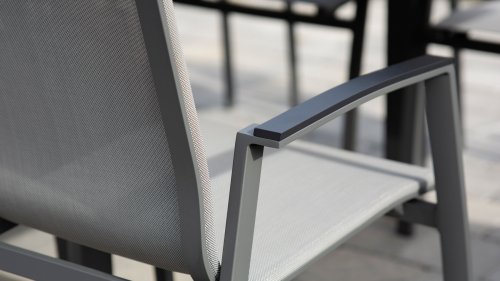 The design of the Taste 4SO Torino garden chair pays attention to detail. The chair offers excellent comfort, ensuring a comfortable evening. Because the Taste Torino Dining is designed with an eye for detail, the seating comfort is perfect. Beautiful and timeless, the Taste 4SO garden chair fits perfectly on the terrace. In addition, the armrests of the Torino garden chairs are enriched with a durable plastic in a perfectly matching and beautiful contrasting color. Thanks to the flexible back textilene, you can enjoy sitting comfortably on every occasion, as the backrest follows the shape of the back. The garden chair is very lightweight and stackable. This makes it easy to store the chair in the winter without taking up much space.