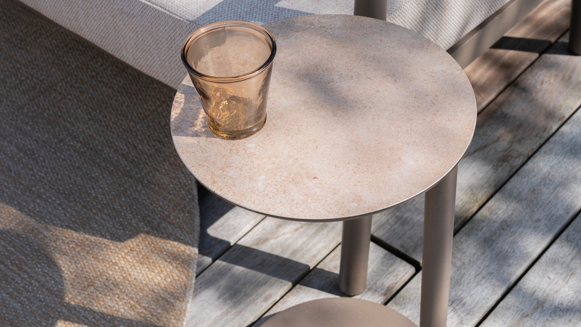 The coffee table (Ø73x35cm) is available in Latte and Terre, perfect for creating a warm and natural ambiance. The side table (Ø30x50cm) is also available in Latte, Terre, and Anthracite, ideal for combining or contrasting with your interior or lounge set.