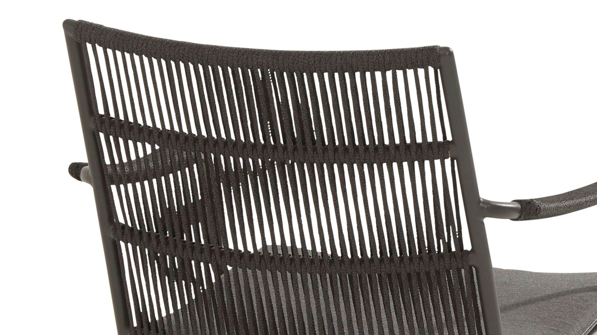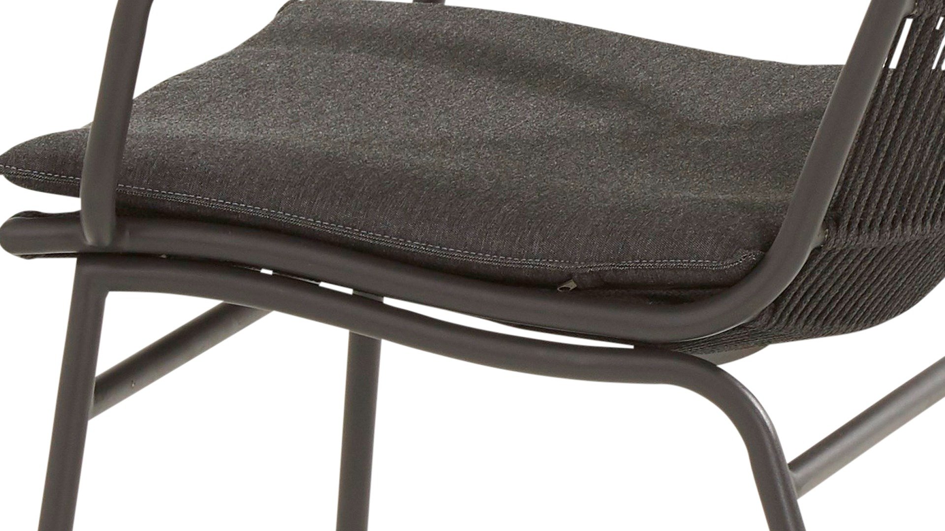 Taste by 4 Seasons Outdoor uses weather-resistant rope that is finished in detail in the Wave garden chair, the frame is also completely weather-resistant due to the anthracite-colored powder coating. The comfortable cushions have a detachable olefin cover, making them resistant to weather influences and easy to wash. The stainless steel base combined with the beautiful anthracite-colored wickerwork gives a modern and contemporary yet "warm" appearance.