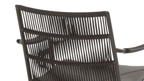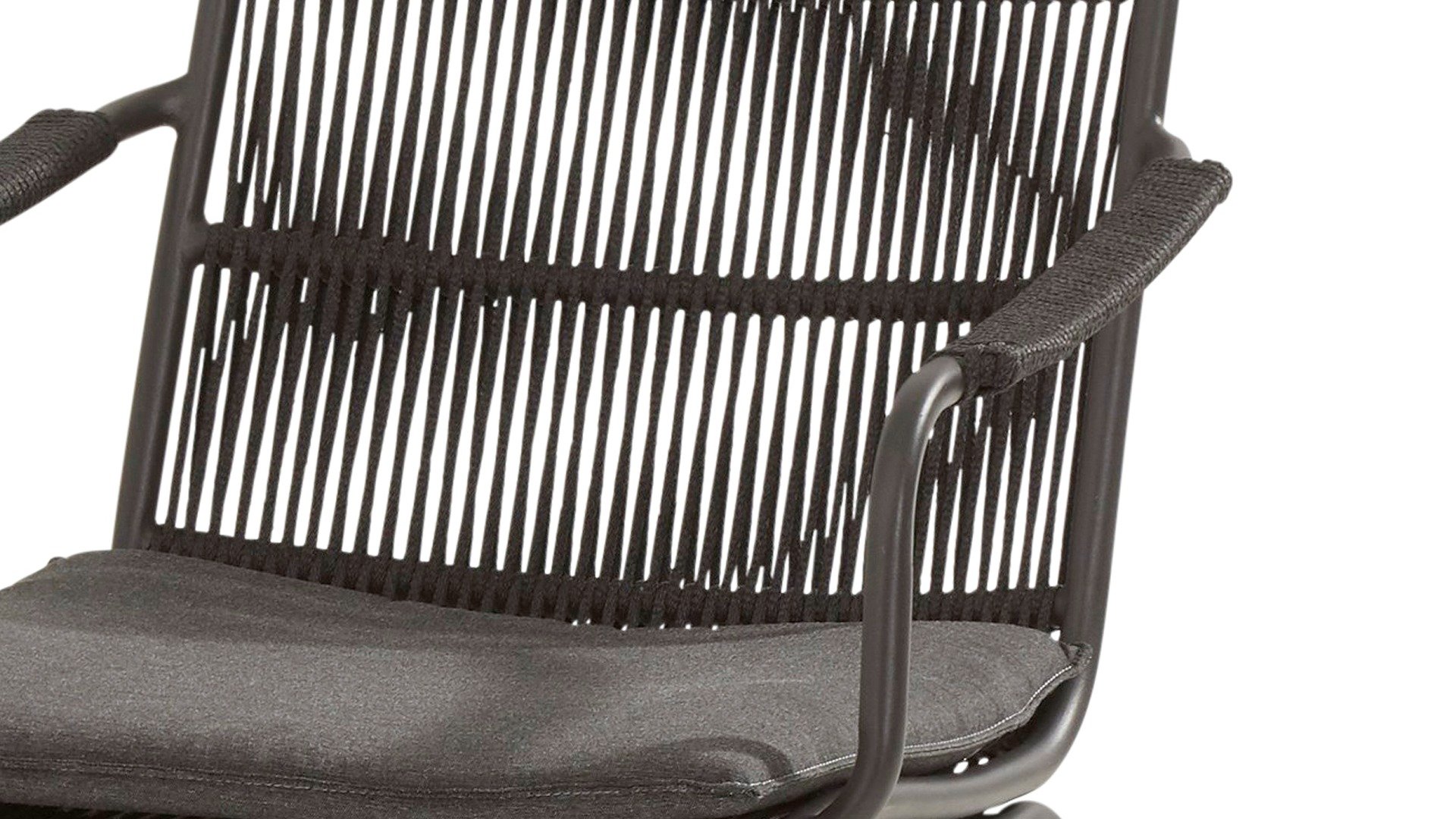 The Taste by 4 Seasons Wave dining has a shell with a unique knotted rope. The airy looks can be found in both the shell and the base, the minimalist base is made of subtle stainless steel tubes in an anthracite-colored coating. In addition, the cushions are equipped with an olefin cushion cover for the best comfort and high weather-resistant properties. Enjoy the Taste by 4 Seasons Wave chair in your garden for years to come thanks to high-quality materials and exclusive design.