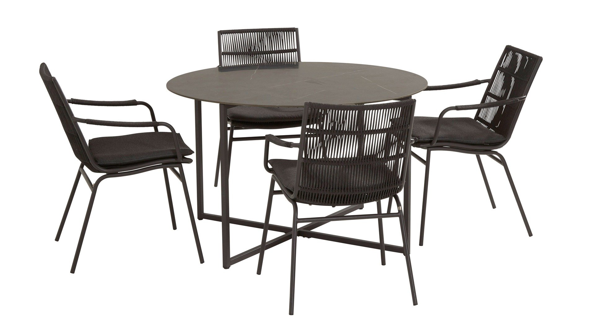 The Taste by 4Seasons Wave dining has a shell with unique knotted Rope. The airy looks can be found in the shell and also in the base, the minimalist base is made of subtle stainless steel tubes in an anthracite-colored coating. In addition, the cushions are equipped with an Olefin cushion cover for the best comfort and high weather-resistant properties.