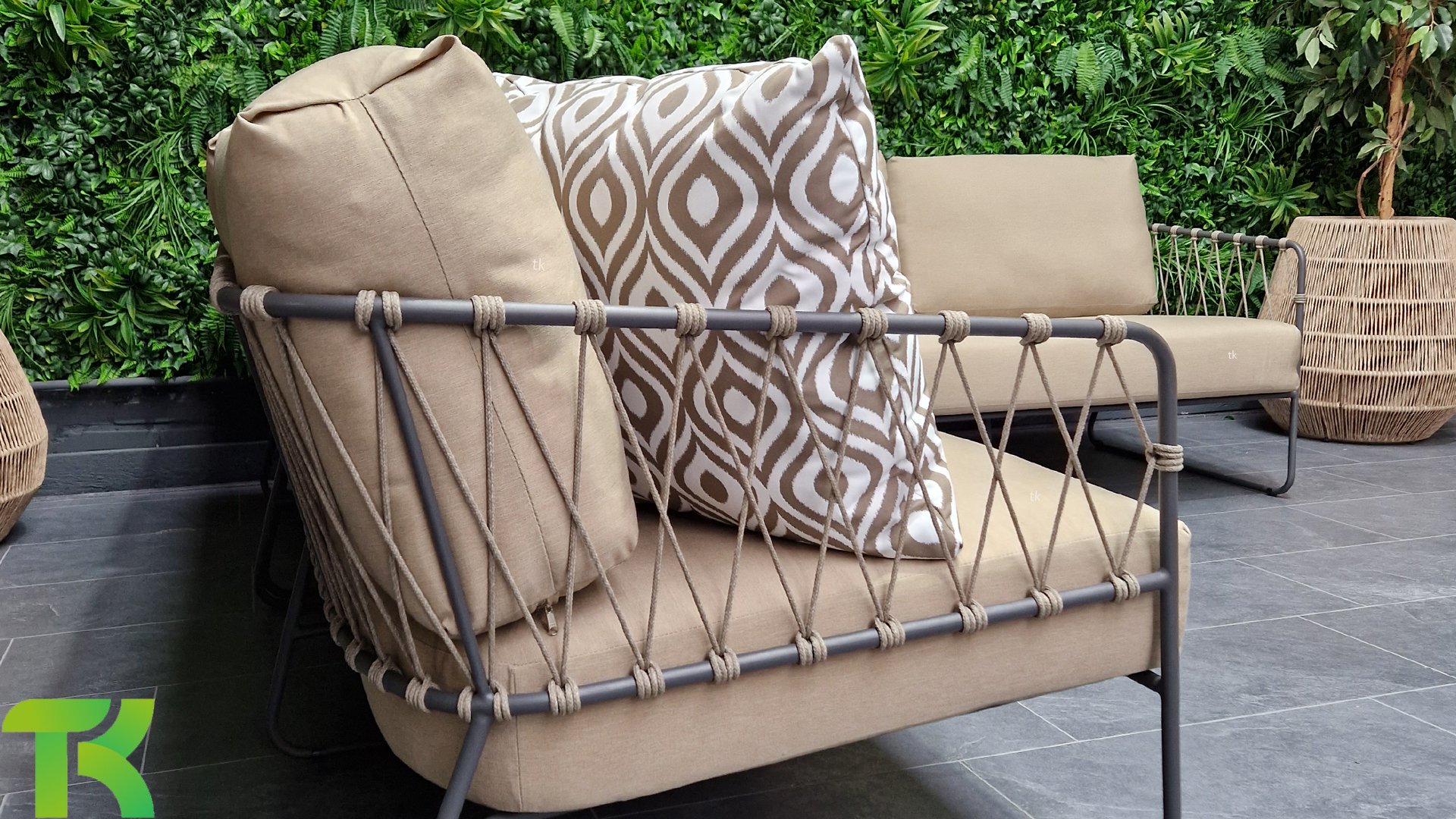 This beautiful material is perfect for outdoor use, because Taste Rope isn't just any shoelace. Taste uses very high-quality rope made from 100% SDP (Solution Dyed Polypropylene). This material is extremely strong and has very little stretch. Polypropylene is oil-based, so dirt and contaminants are virtually insoluble, just like our cushions. Taste offers exclusive designs using hand-woven rope patterns and techniques.