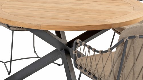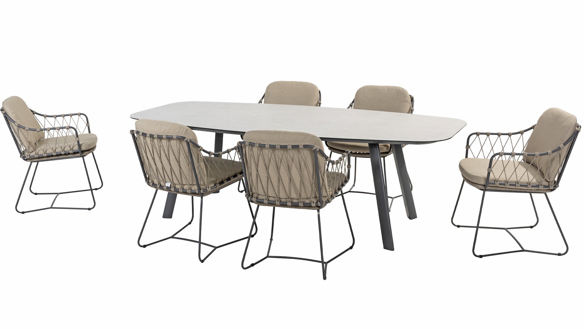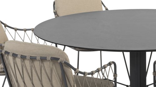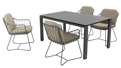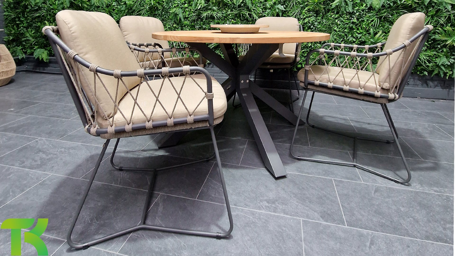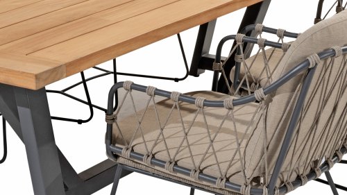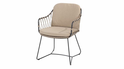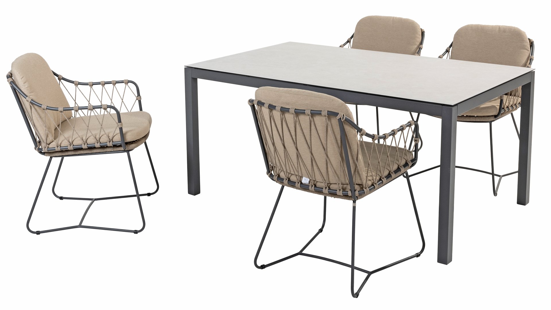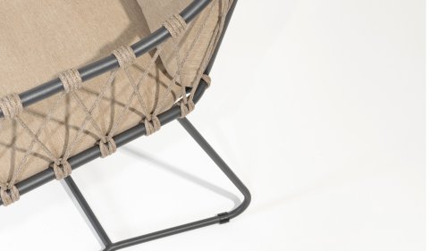 The Prego dining chair is made with high-quality taupe rope and has a sturdy frame of anthracite stainless steel and aluminum, making it resistant to changing weather conditions. The included cushions provide extra comfort during long, relaxed dinners or cozy gatherings outdoors.
