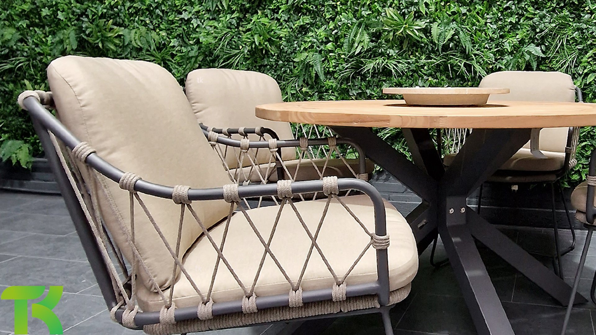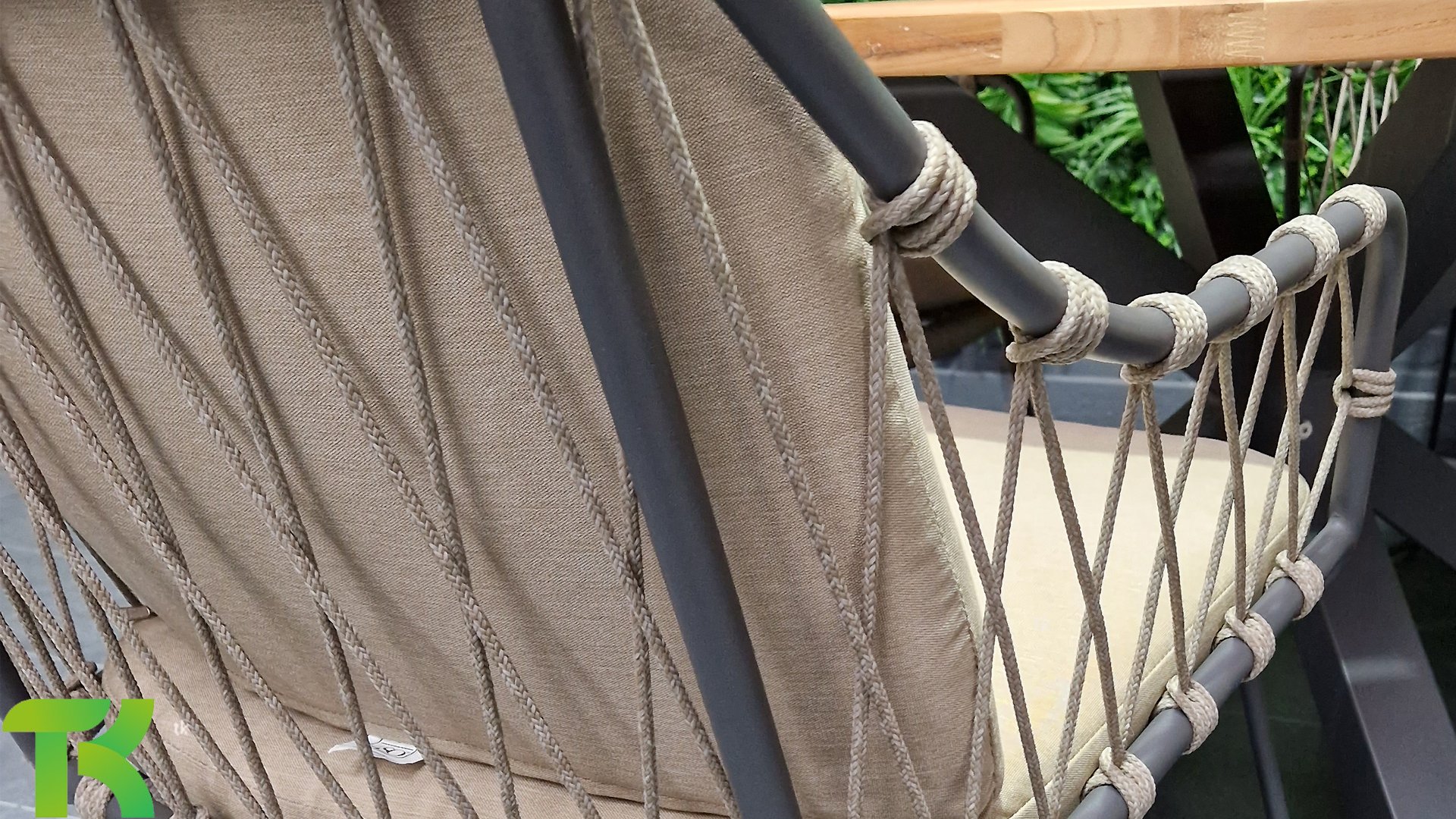 This beautiful material is perfect for outdoor use, because Taste Rope isn't just any shoelace. Taste uses very high-quality rope made from 100% SDP (Solution Dyed Polypropylene). This material is extremely strong and has very little stretch. Polypropylene is oil-based, so dirt and contaminants are virtually insoluble, just like our cushions. Taste offers exclusive designs using hand-woven rope patterns and techniques.
