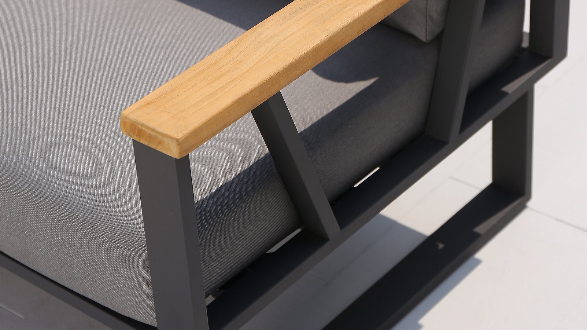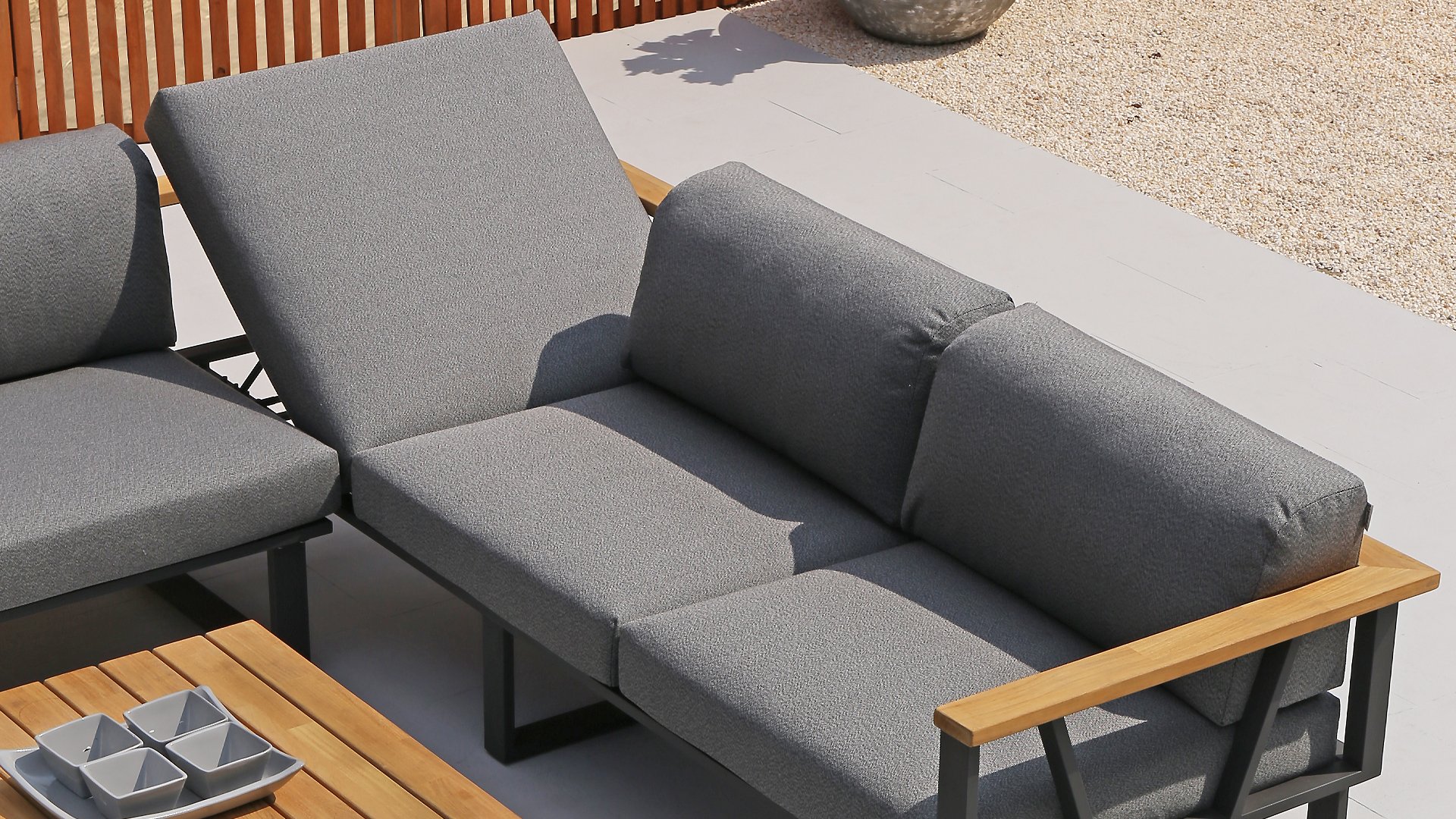 Zebra presents the beautiful collection of garden furniture designed and produced with quality materials such as stainless steel or aluminum, Batyline/Twitchell, recycled teak, Sunbrella fabric, or stamskin. Zebra wants to make your stay in the garden as comfortable as possible with its special collection of garden furniture. Therefore, Zebra's garden furniture must also meet many requirements: a visibly and tangibly beautiful design, high seating comfort, low maintenance, high functionality, flexibility, and, of course, resistance to sun, wind, and rain. Through the accumulated know-how and cooperation with the best suppliers and assembly specialists, Zebra can meet all these requirements. Zebra has a passion for design and innovative solutions. Zebra has developed into an absolute top brand for comfortable outdoor furniture. The cushions are available in Olefin Grey, Tuva Medium Grey & Tuva Tweed Grey!