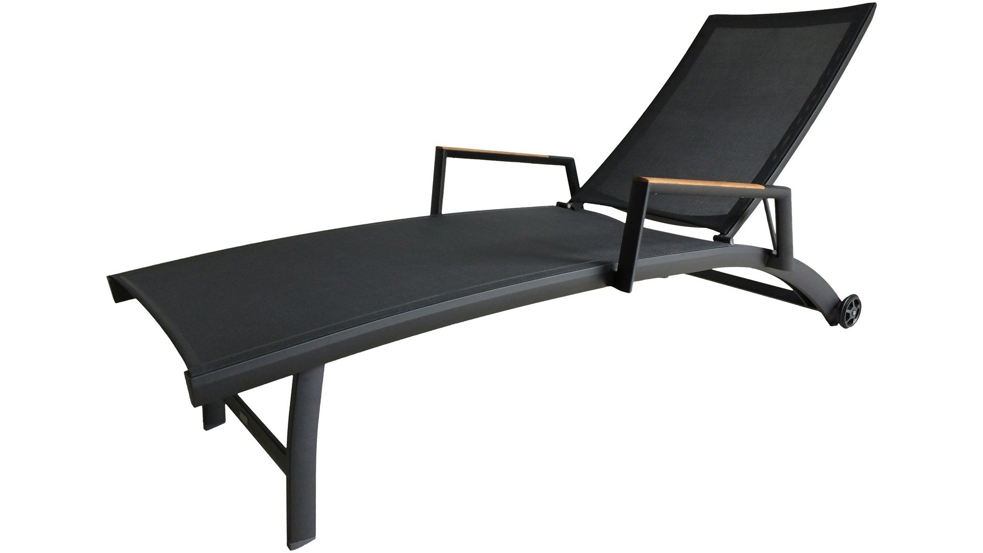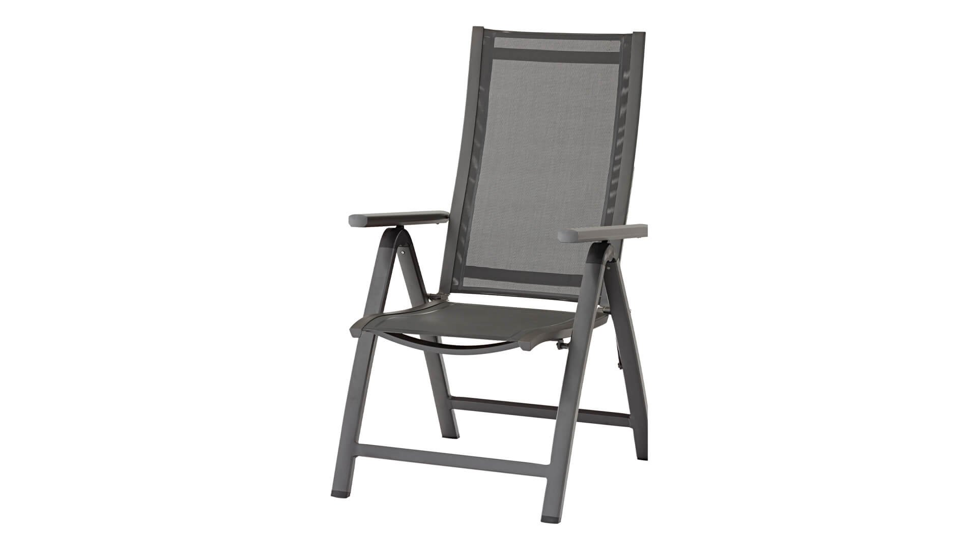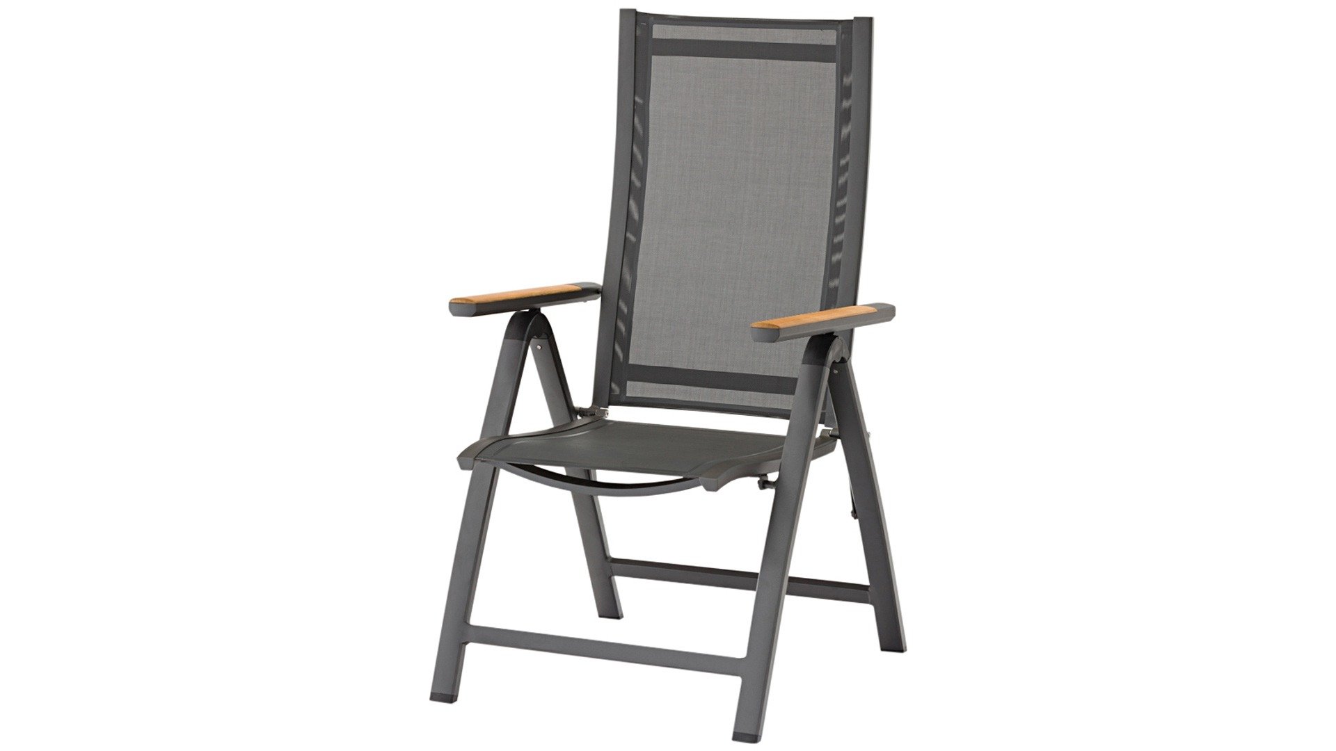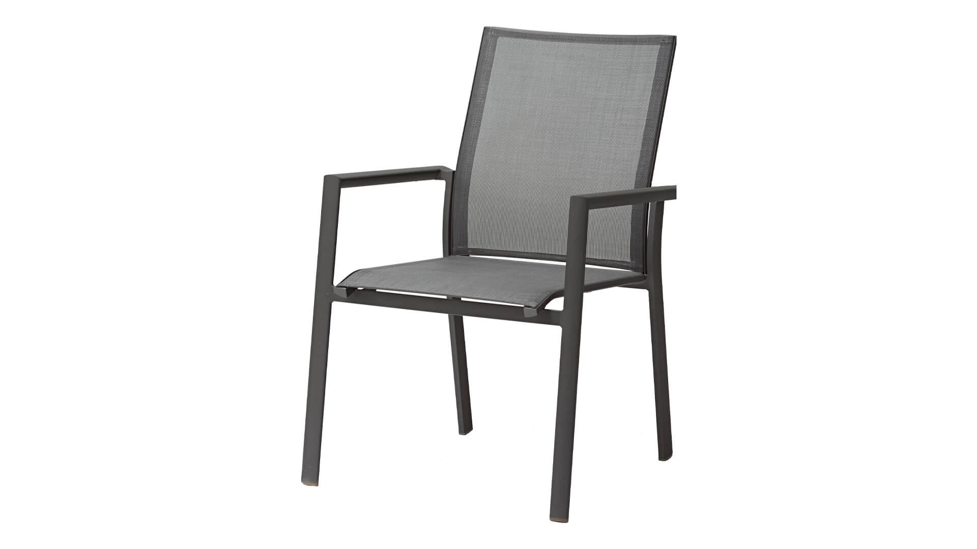 The Zebra Greenline Fly garden chair stackable series. The frame of powder-coated aluminum Graphite, Palladium, and the Fly stainless steel are covered with a Carbon Grey colored Batyline® fabric. The Fly chair White has a Light Grey seat. The Batyline® Textilene used is a proven synthetic fabric that is breathable and tear-resistant for multiple years. The Greenline series from Zebra combines contemporary, ecology, and sustainability with each other. In the corporate concept Greenline, the issue of sustainability and the selection of environmentally friendly materials, which are processed into comfortable, beautifully designed, timeless furniture. The Zebra Fly garden chair is a beautiful comfortable chair with teak armrests. These armrests have a Natural Finish which matches nicely with the Hudson and Ocean table.