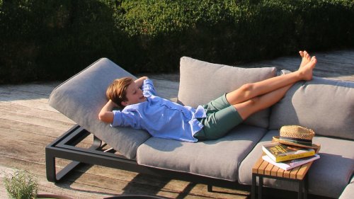The Zebra Fly Lounge not only promises a high level of comfort, but is also extremely elegant and exudes class. The fine aluminium frame perfectly complements the high-quality seat and back cushions and completes the look of the Zebra Fly. The Zebra Fly can be admired from all sides! The powder-coated aluminium frame is maintenance-free. The wonderfully thick cushions are not only made of Olefin all-weather quality, but also offer an extremely high level of seating comfort due to the use of different fillings in the seat and back cushions. Settle down in these amazing lounge cushions and experience true lounging. You can also use the 3-seater sofa as a separate sunbed or as a comfortable resting place in your lounge set by using the left or right seat as an adjustable backrest.