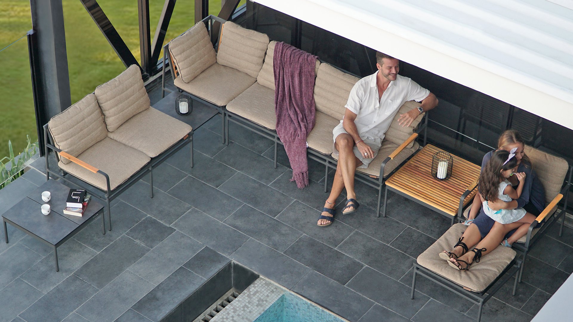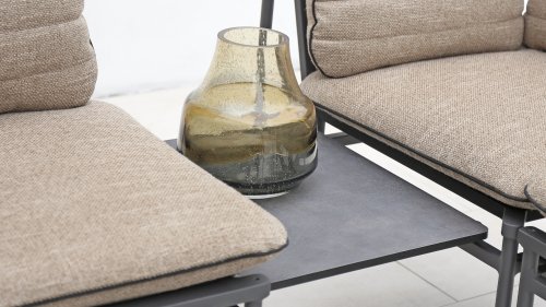 Seats made of high-quality textile and matching seat cushions made of waterproof Sunny Guard fabric in the color "macchiato" look cozy and invite you to linger. The new Zebra greenline lounge consists of various elements that can be combined as desired. The selection of elements varies from a 3-seater, 2-seater or armchair to the Max Lounge corner, a stool and the Max Lounge connecting top. The cozy MAX lounge can also be optionally combined with two different sizes of coffee tables or a dining table. The "graphite" aluminum dining table with a width of 140 centimeters offers enough space for comfortable dining.