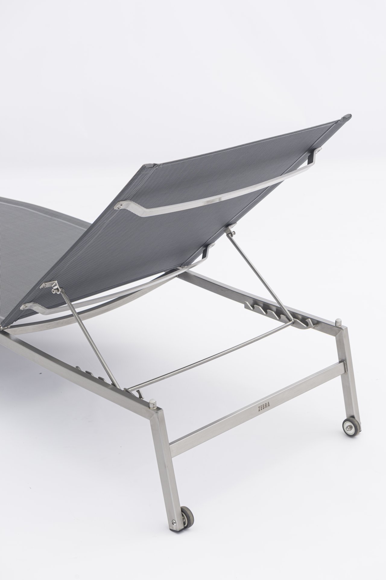 Zebra presents the beautiful collection of garden furniture designed and produced with quality materials such as stainless steel or aluminum, Batyline/Twitchell, recycled teak, Sunbrella fabric or stamskin. Zebra wants to make your stay in the garden as comfortable as possible with its special collection of garden furniture. The Zebra one sun lounger is available in the color Dark grey and Dark platinum.